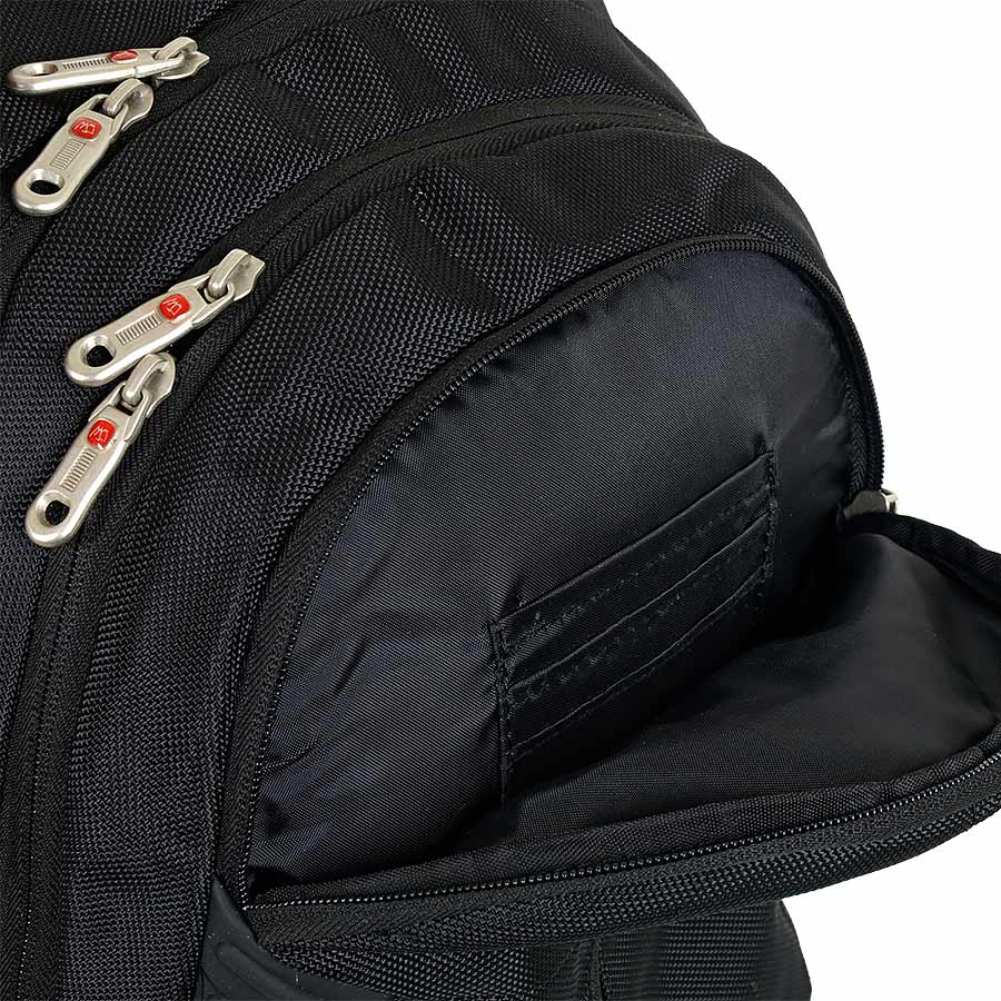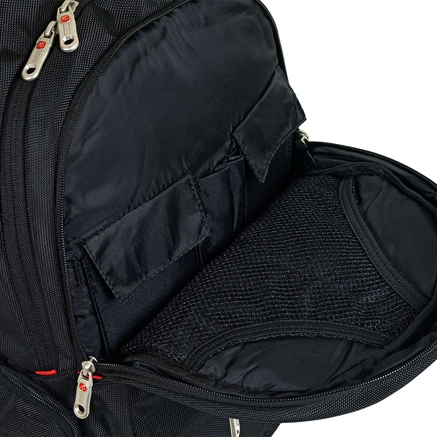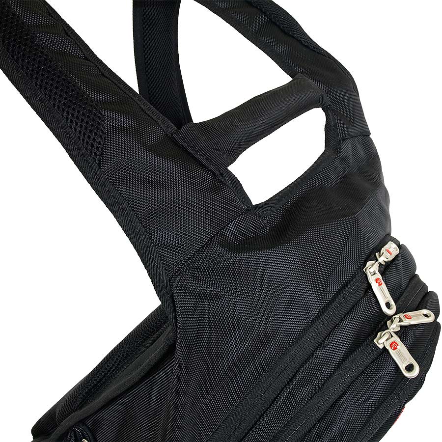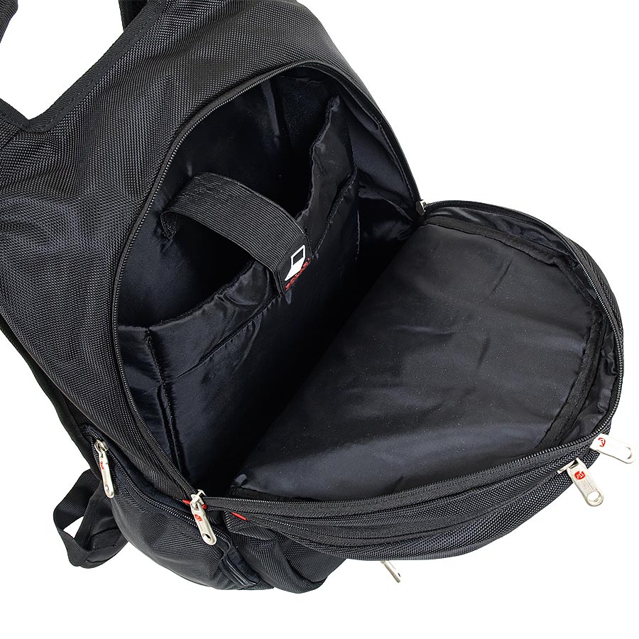 В рюкзаке два отделения, большое и маленькое. Большое - содержит папку-чехол для ноутбука до 15 дюймов, маленькое - органайзер. Снаружи - три кармана на молнии. Спинка и лямки выполнены из мягкого, продуваемого материала. Рюкзаки имеет конструкцию "майка" для предотвращения сползания лямок с плечей. Эта модель рассчитана на рост 170-195см.