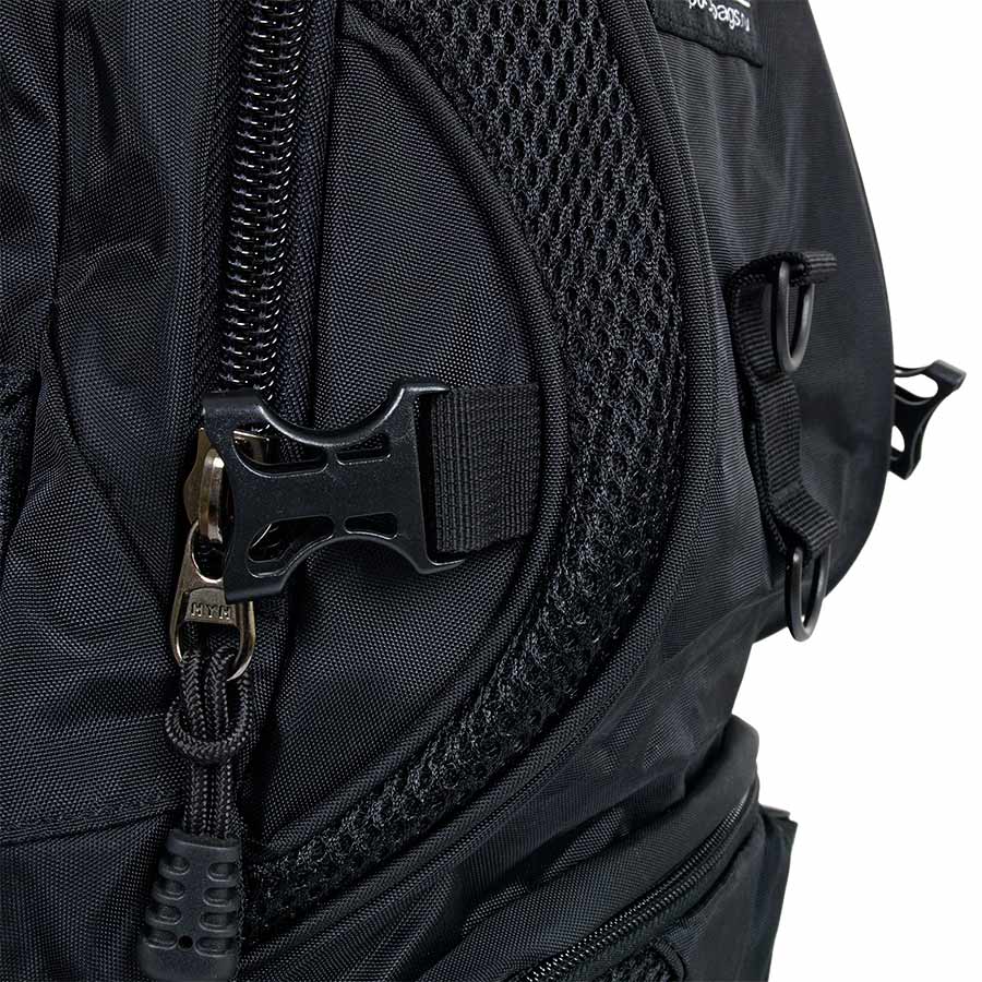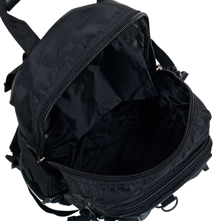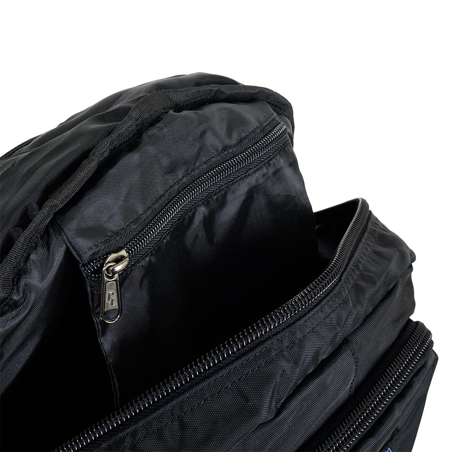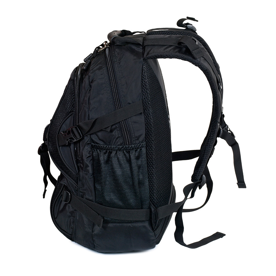 Рюкзак выполнен из толстого полиэстера и имеет одно большое отделение и два кармана на молнии. Лямки и спинка пропенены, и обшиты трикотажной сеткой. Есть фиксация лямок на груди.