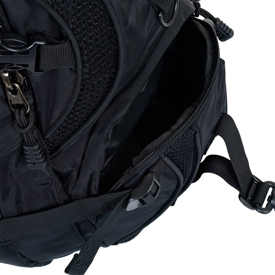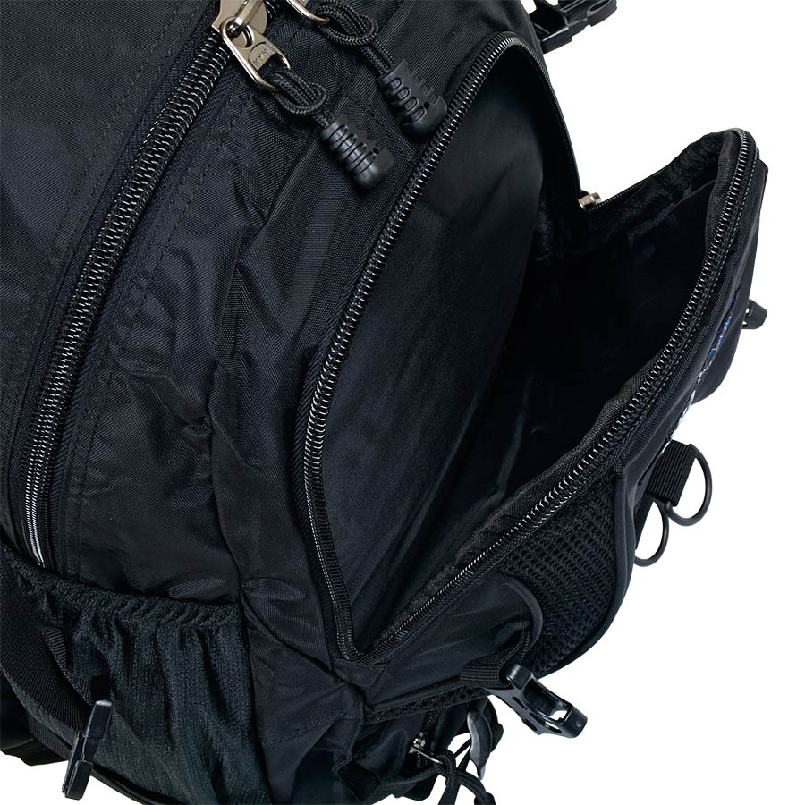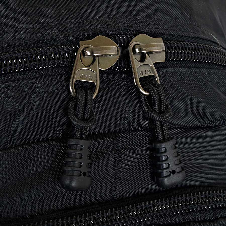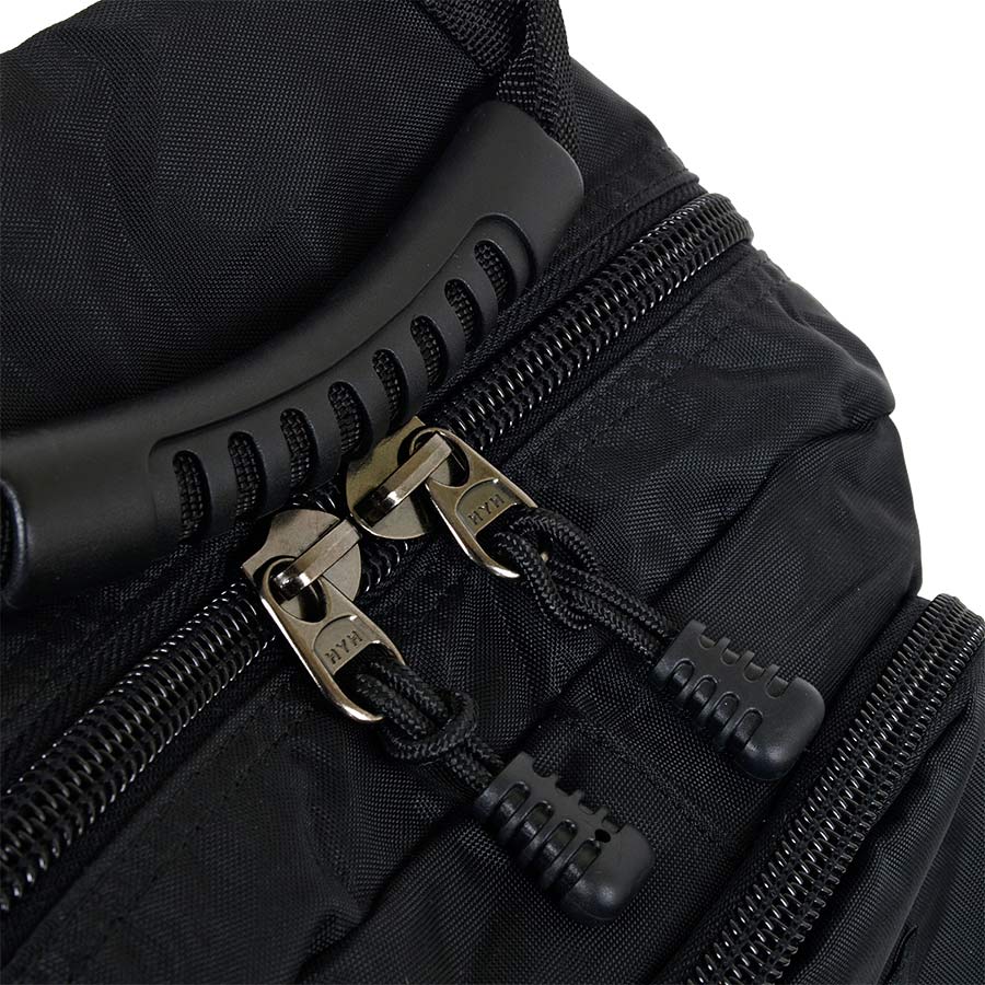 Рюкзак выполнен из толстого полиэстера и имеет одно большое отделение и два кармана на молнии. Лямки и спинка пропенены, и обшиты трикотажной сеткой. Есть фиксация лямок на груди.