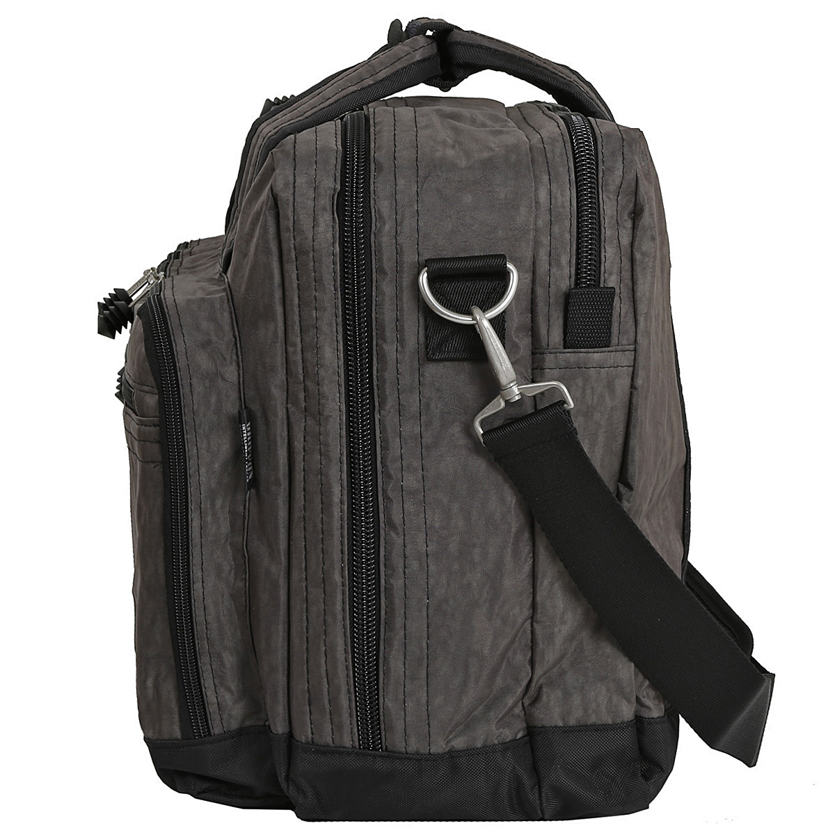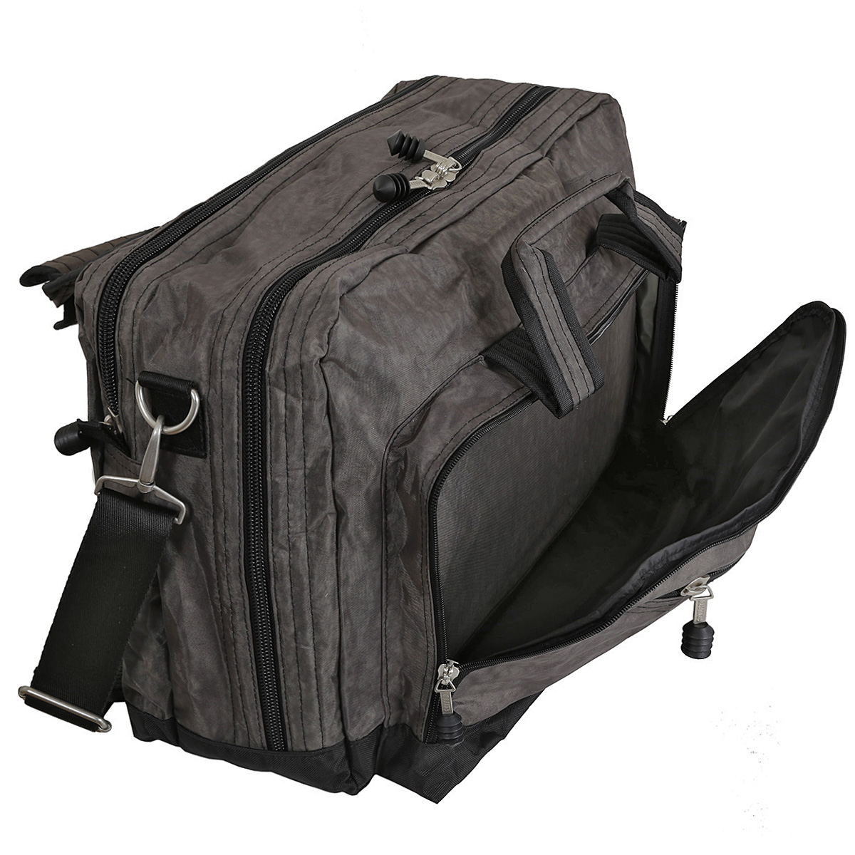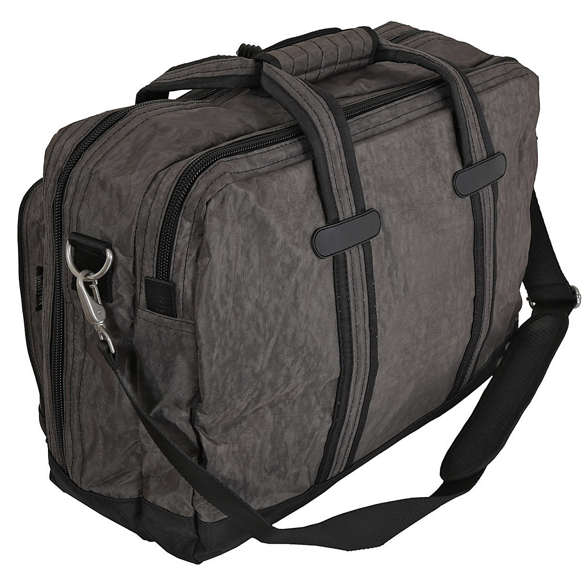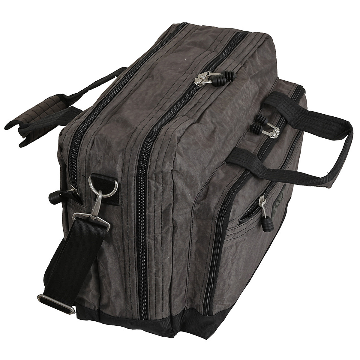 Дорожная сумка с двумя отделениями. Внутри - стягивающие ремни для фиксации одежды. Снаружи - два кармана на молнии. В комплекте есть регулируемый, плечевой ремень.