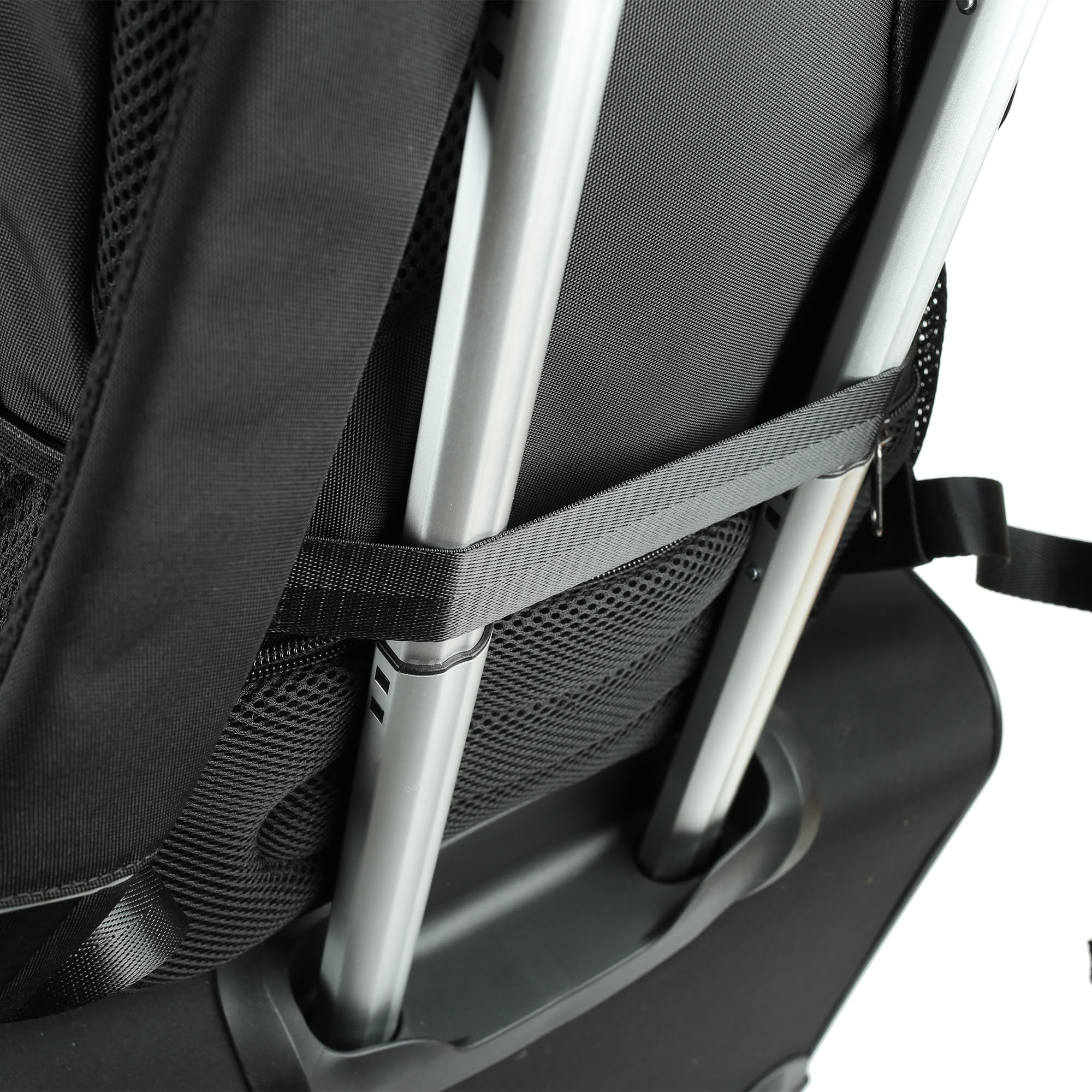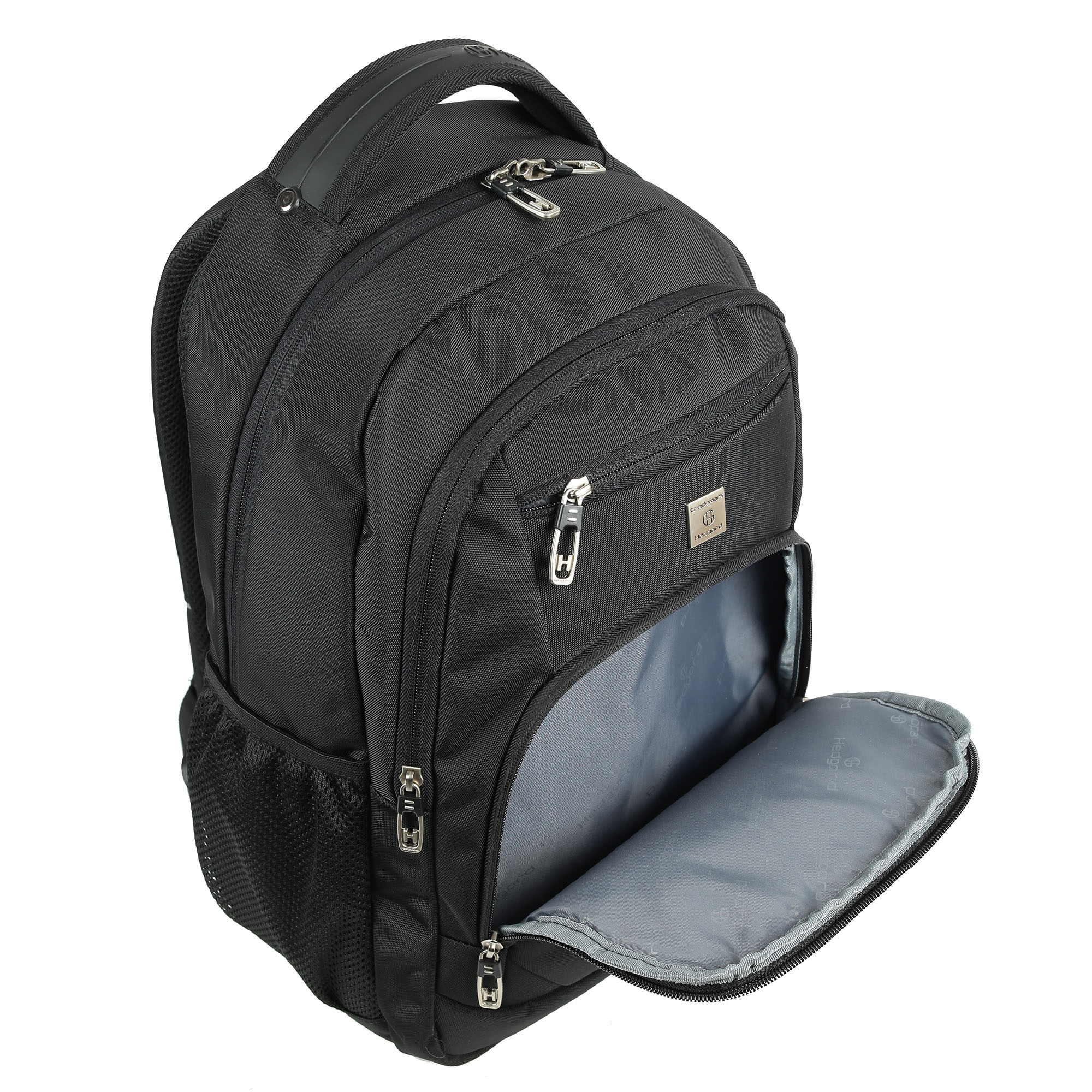 два отделения: основное с противоударным чехлом для ноутбука и вспомогательное с органайзером;