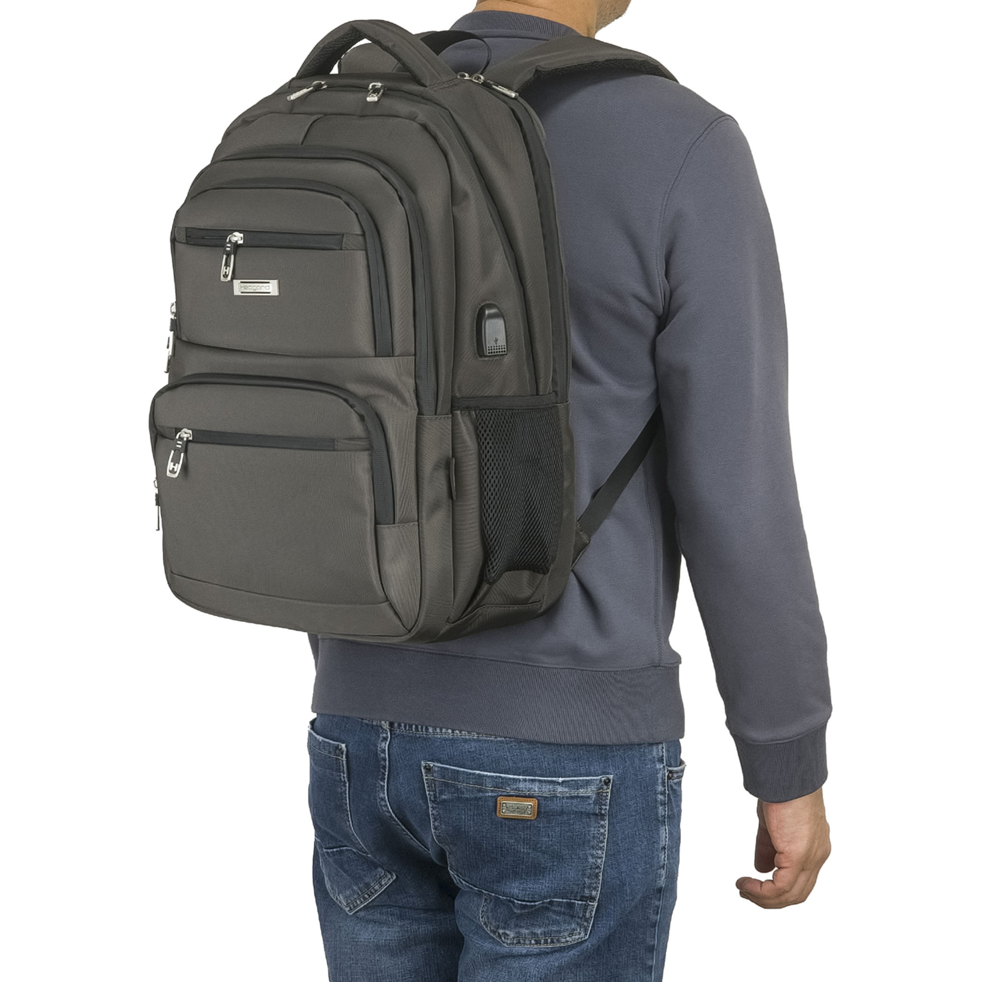 В рюкзаке есть три отделения: основное, отделение для личных вещей, а также вспомогательное отделение с органайзером. Отделение для ноутбука 15,6 интегрировано в спинку рюкзака, обеспечивая максимальную защиту устройства. Все отделения закрываются на пылезащищённую молнию.