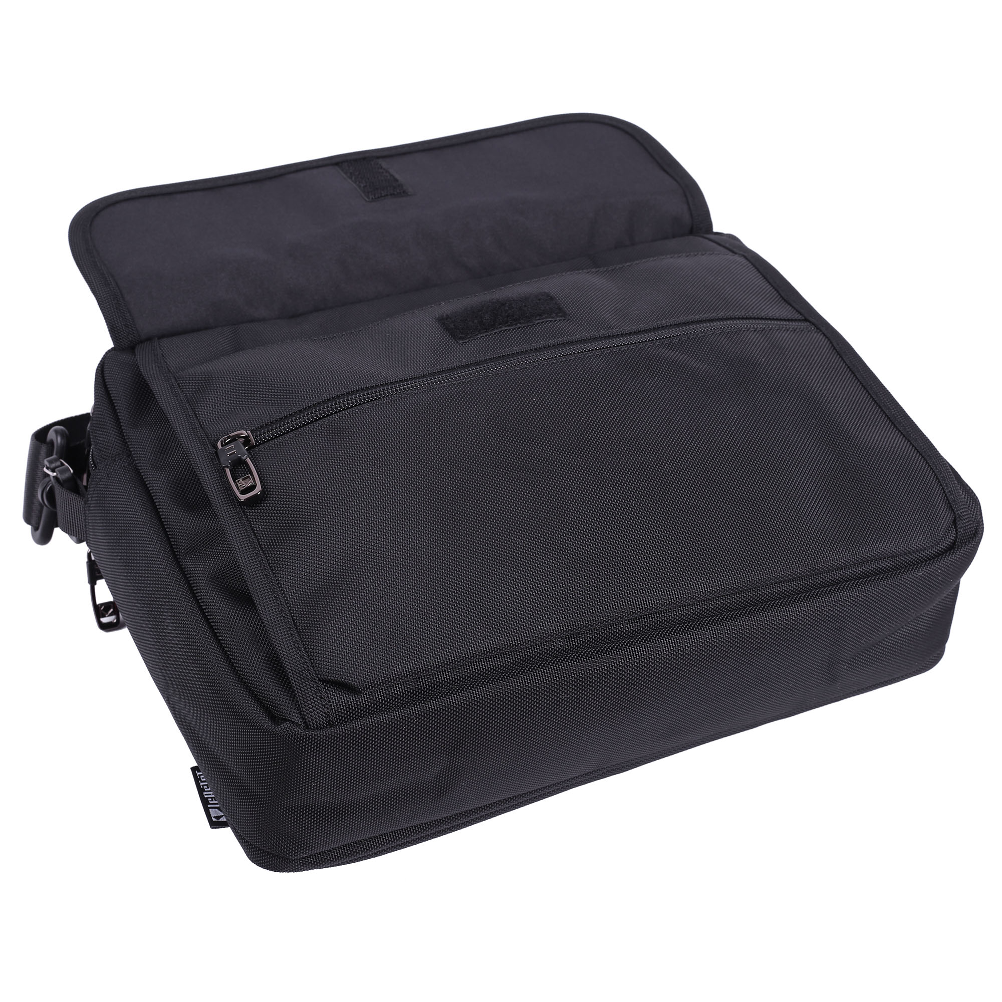 Сумка тонкая и похожа на папку и выпускается в трех размерах. Внешний материал - непромокаемый полиэстер на полимерной основе. Внутренний материал - эластичная пена и подкладка из нейлона. Сумка плотная на ощупь и держит форму пустая.