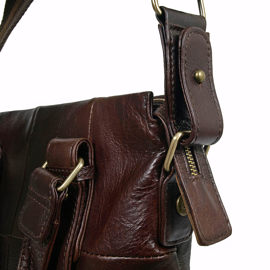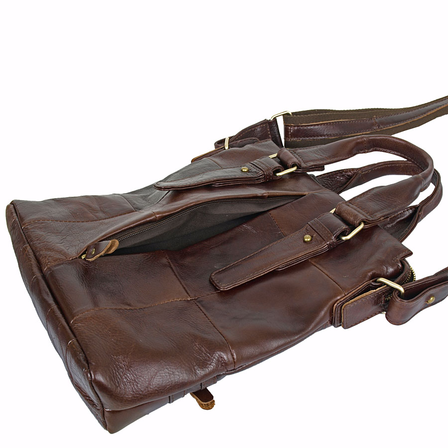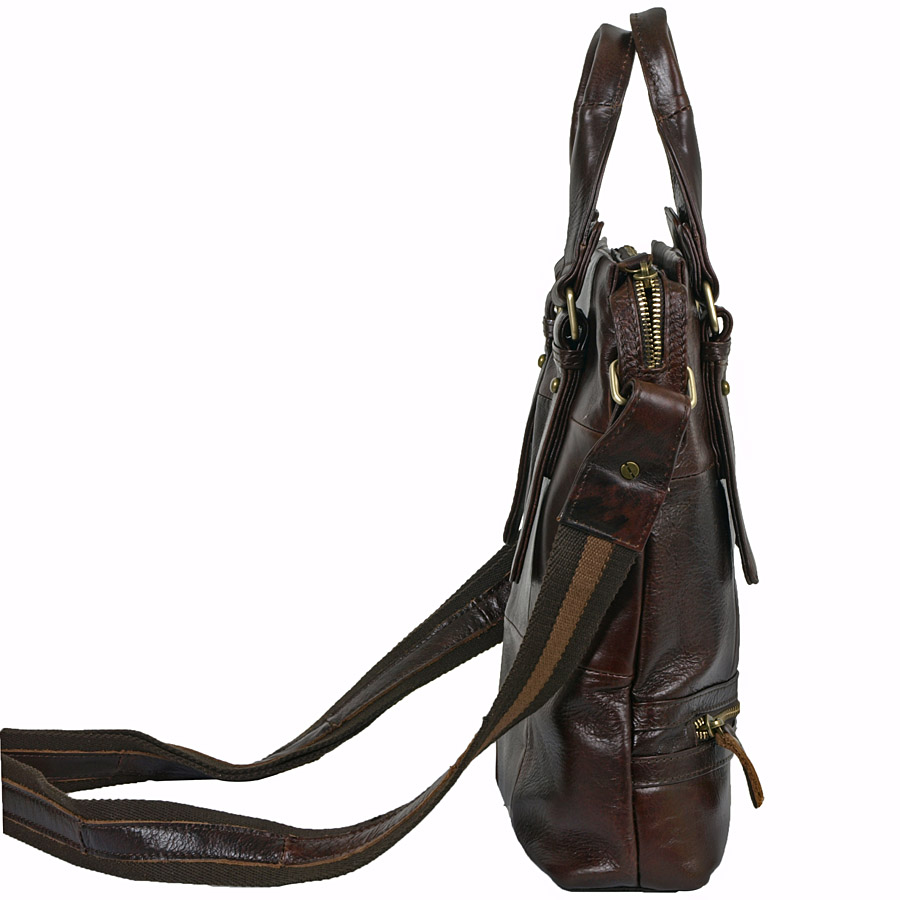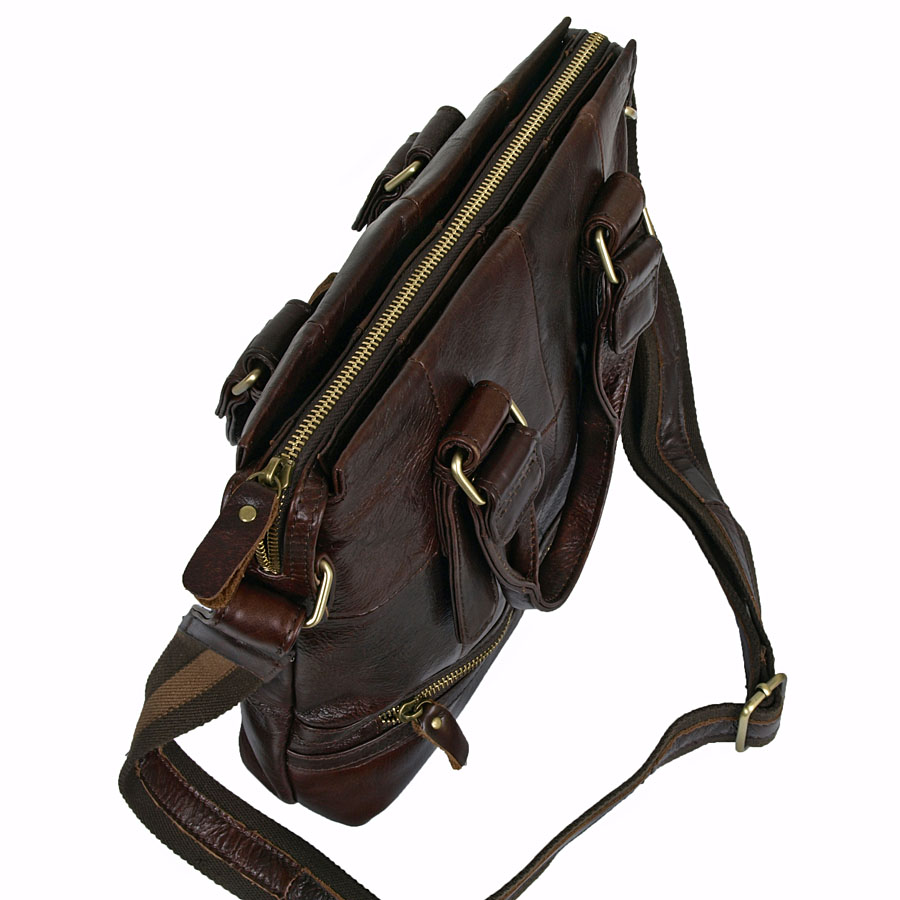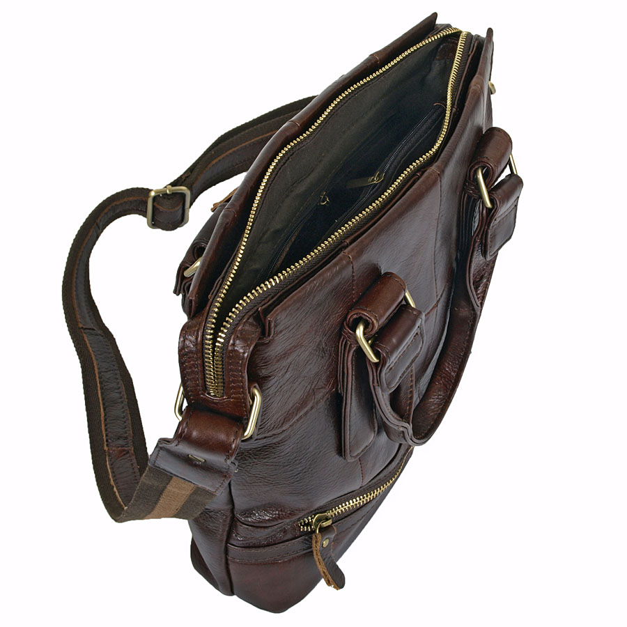 Сумка мужская, кожаная, формата А4. Основное отделение закрывается на молнию и поделено средником. Внутри два кармана на молнии и два открытых кармана. Снаружи два кармана на молнии. В комплекте есть регулируемый, плечевой ремень.