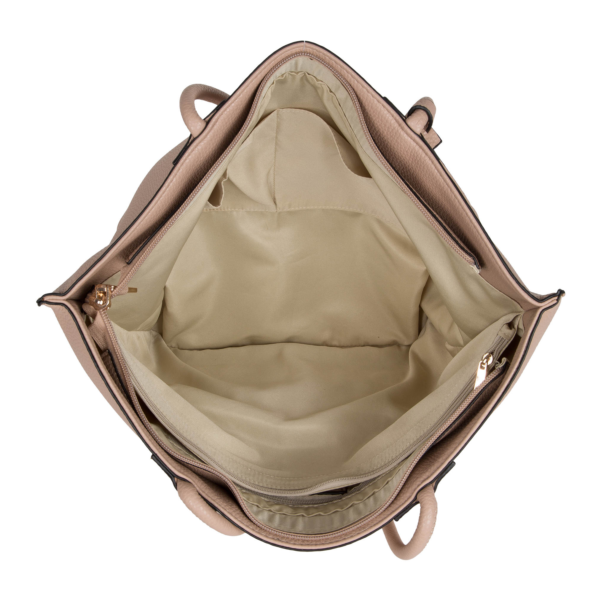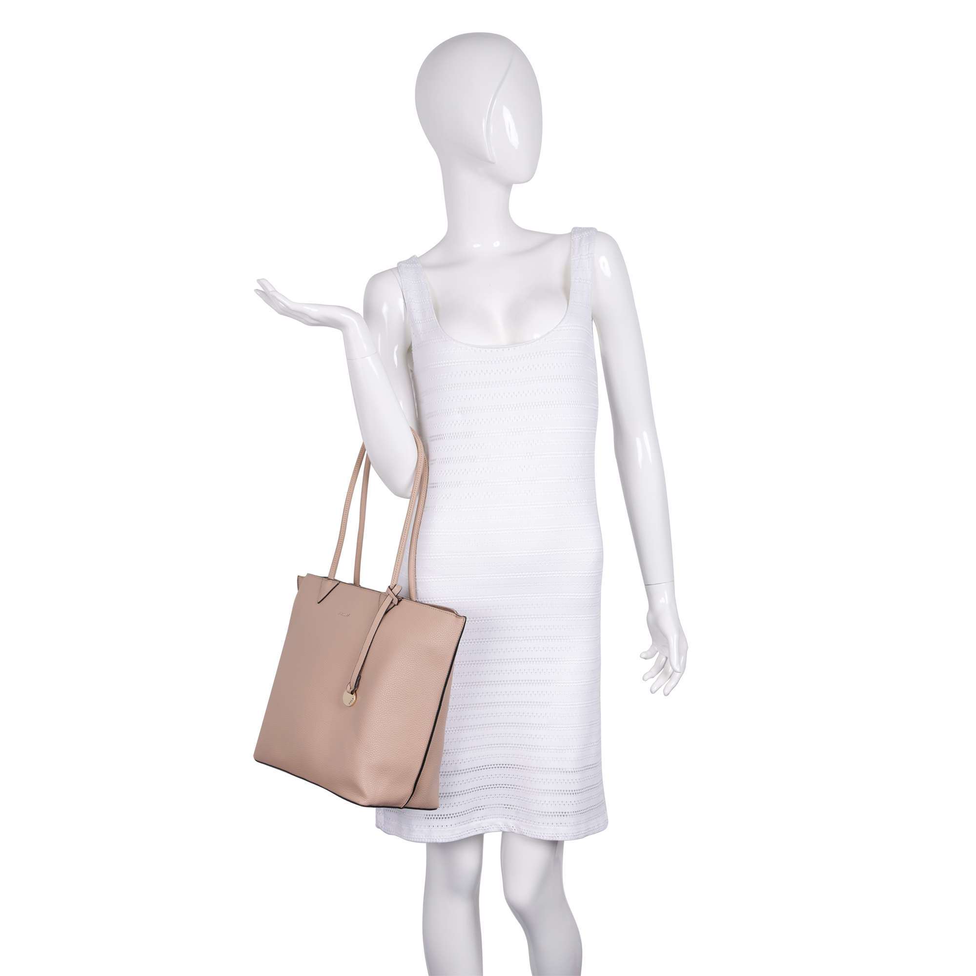 Вместительная сумка-тоут на двух ручках выполнена из экокожи и прекрасно подходит для повседневного использования. Основное отделение закрывается на пластиковую молнию и разделено карманом на молнии для более комфортного размещения вещей и документов. Сзади сумки есть карман на молнии, внутри- маленький кармашек на молнии. Сумку можно носить и в руках и на плече с помощью двух тонких ручек, высота которых составляет 26 см.