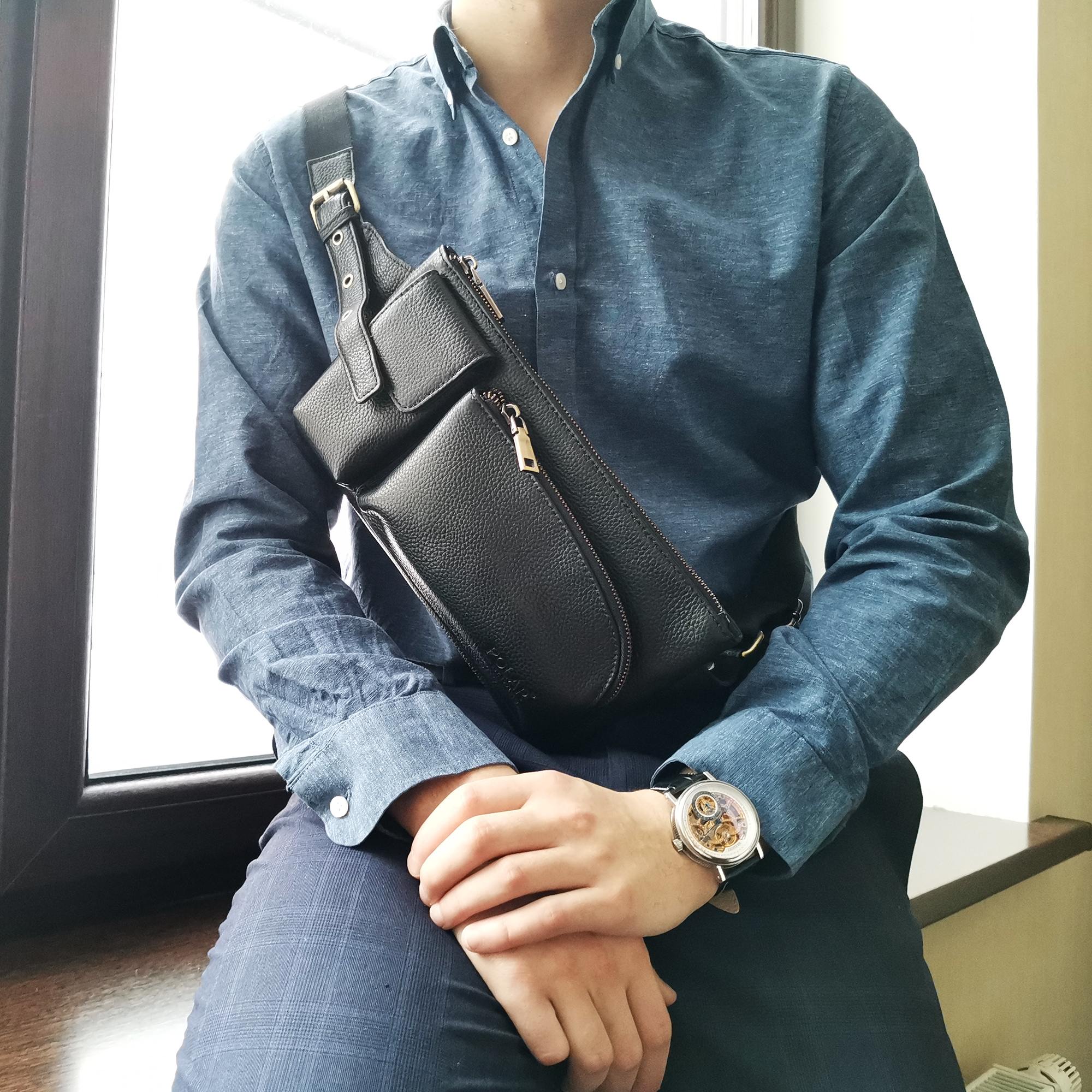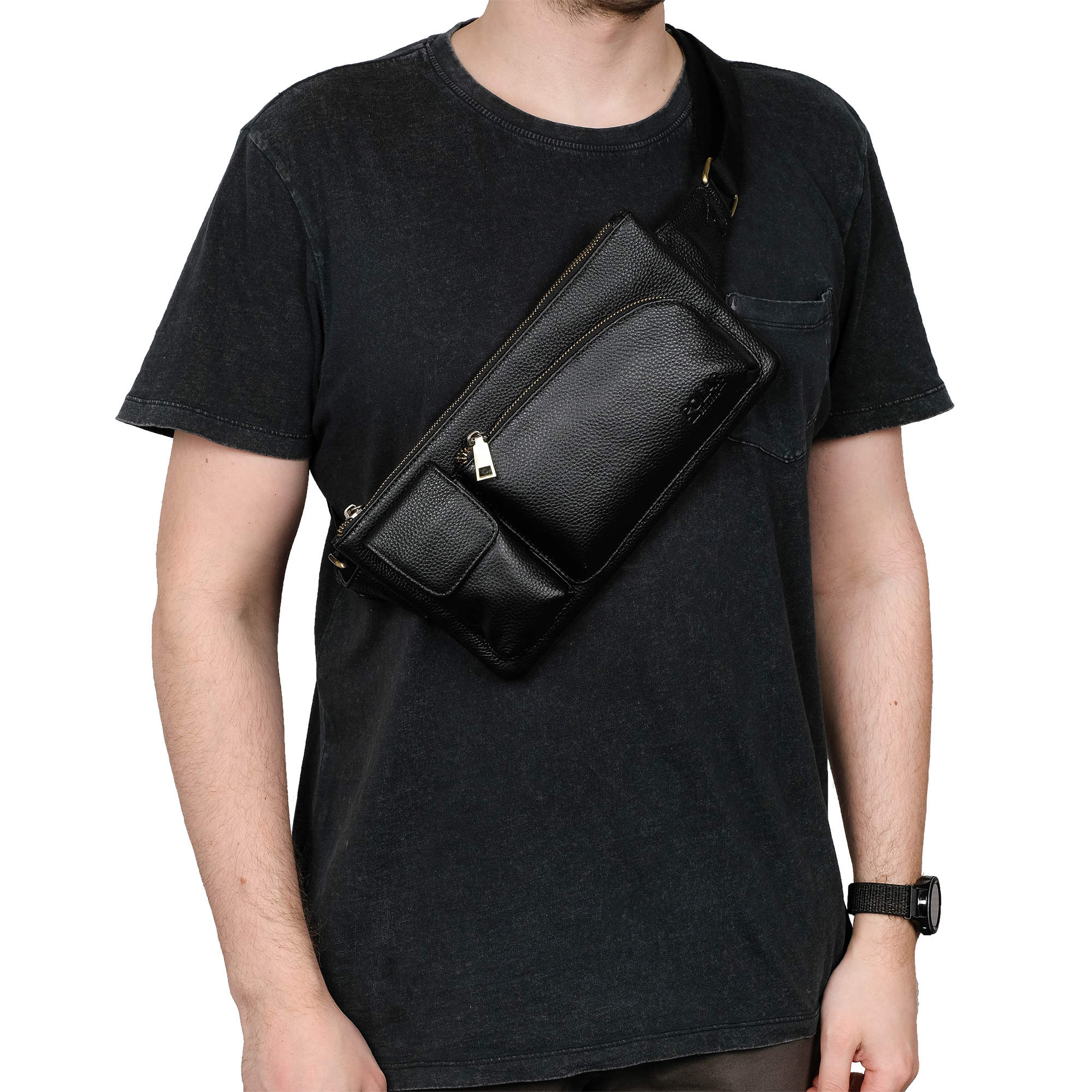 Сумка на пояс Polar 20243 Black - стильный и функциональный аксессуар для мужчин, выполненный из натуральной кожи.