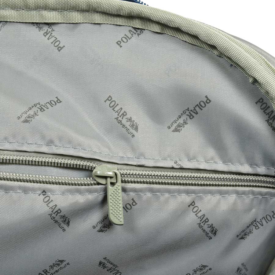Внутри — один карман на молнии. Снаружи — два больших кармана на молнии.
