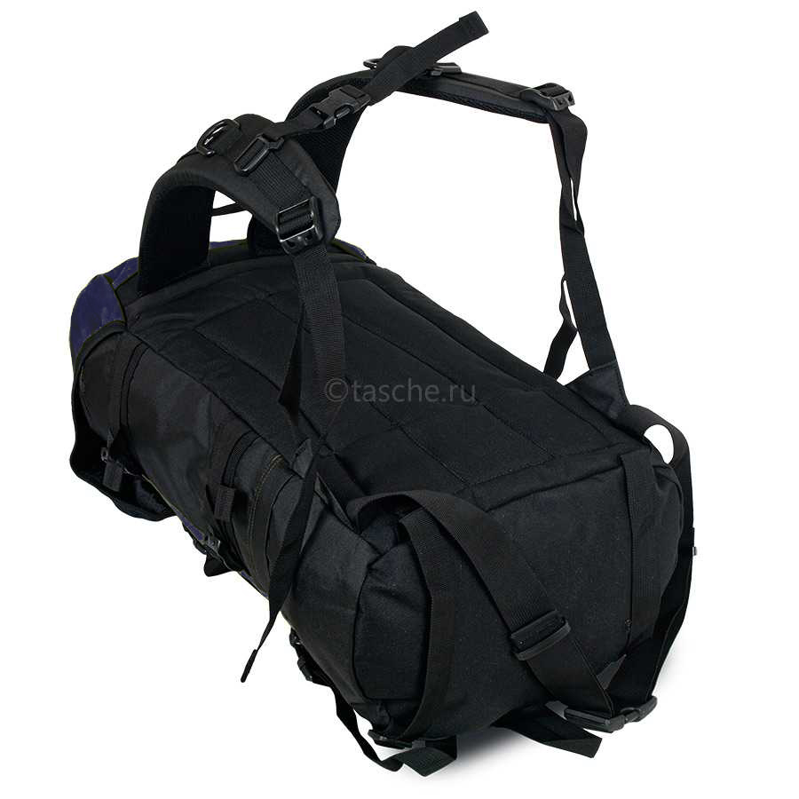 Рюкзак походный, с функцией увеличения объема 45-60л. Легкий, прочный рюкзак для непродолжительных походов или туристических поездок. Основное отделение на подкладке из нейлона имеет два входа, затягивается сверху шнурком и закрывается на клапан. Внутри отстегивающаяся мембрана, с помощью которой можно разделить основное отделение на две части. Сверху, на крышке, есть большой карман на молнии. Спинка и лямки пробиты пеной. Есть фиксация на груди и на поясе. Можно пронести в самолет как ручную кладь.