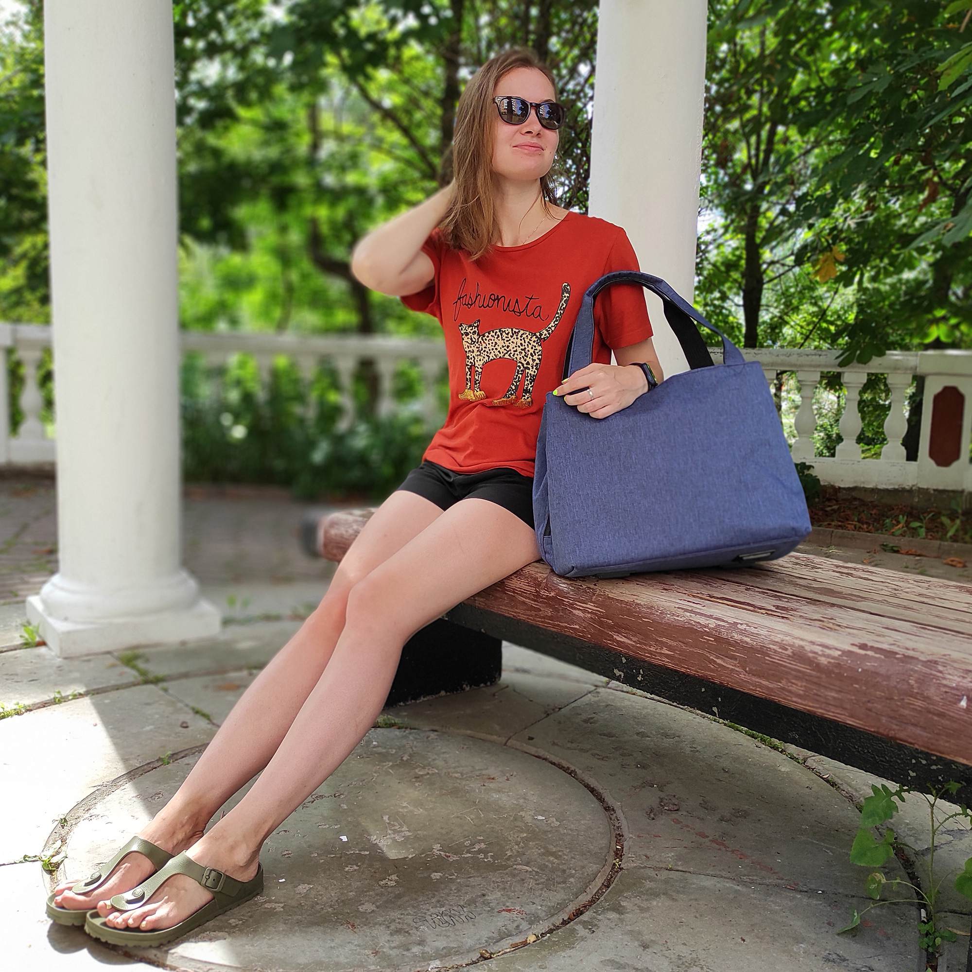 Высота ручек 18см, что позволяет ее носить на плече.