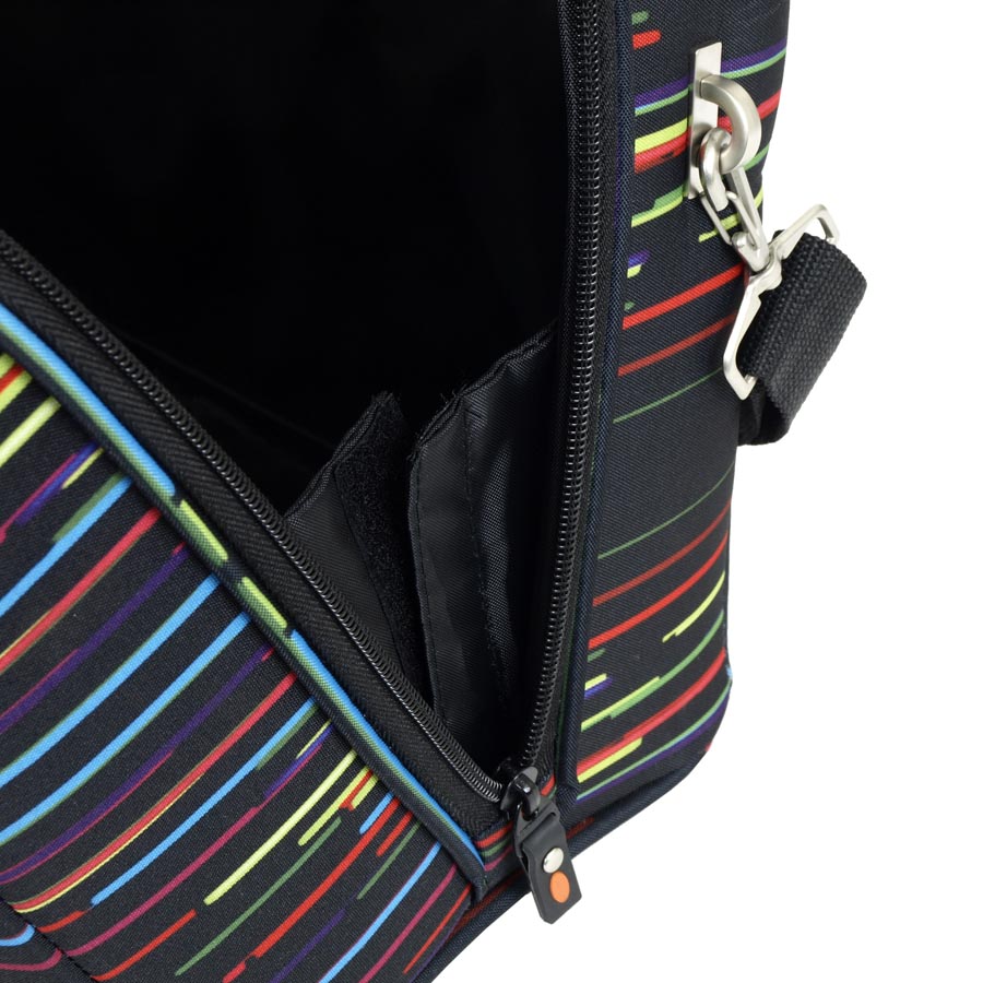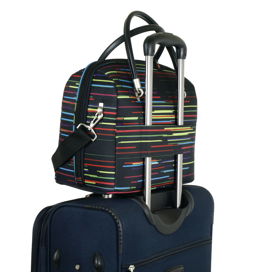 Бьюти-кейс дорожный. Основное отделение закрывается на молнию. Внутри - два кармана на молнии. Есть крепление на ручку чемодана и регулируемый плечевой ремень.