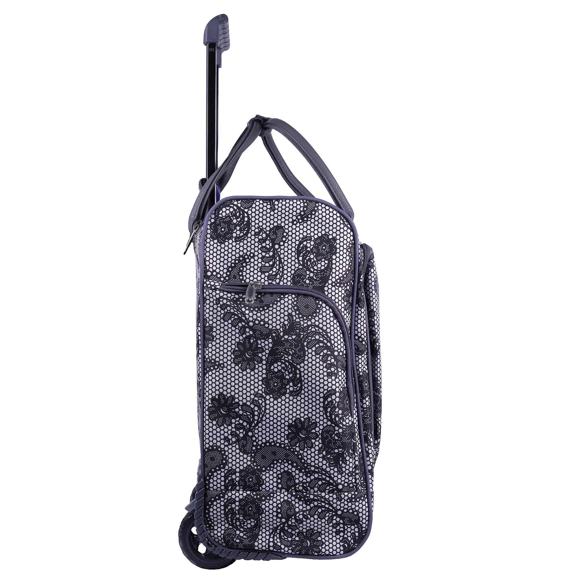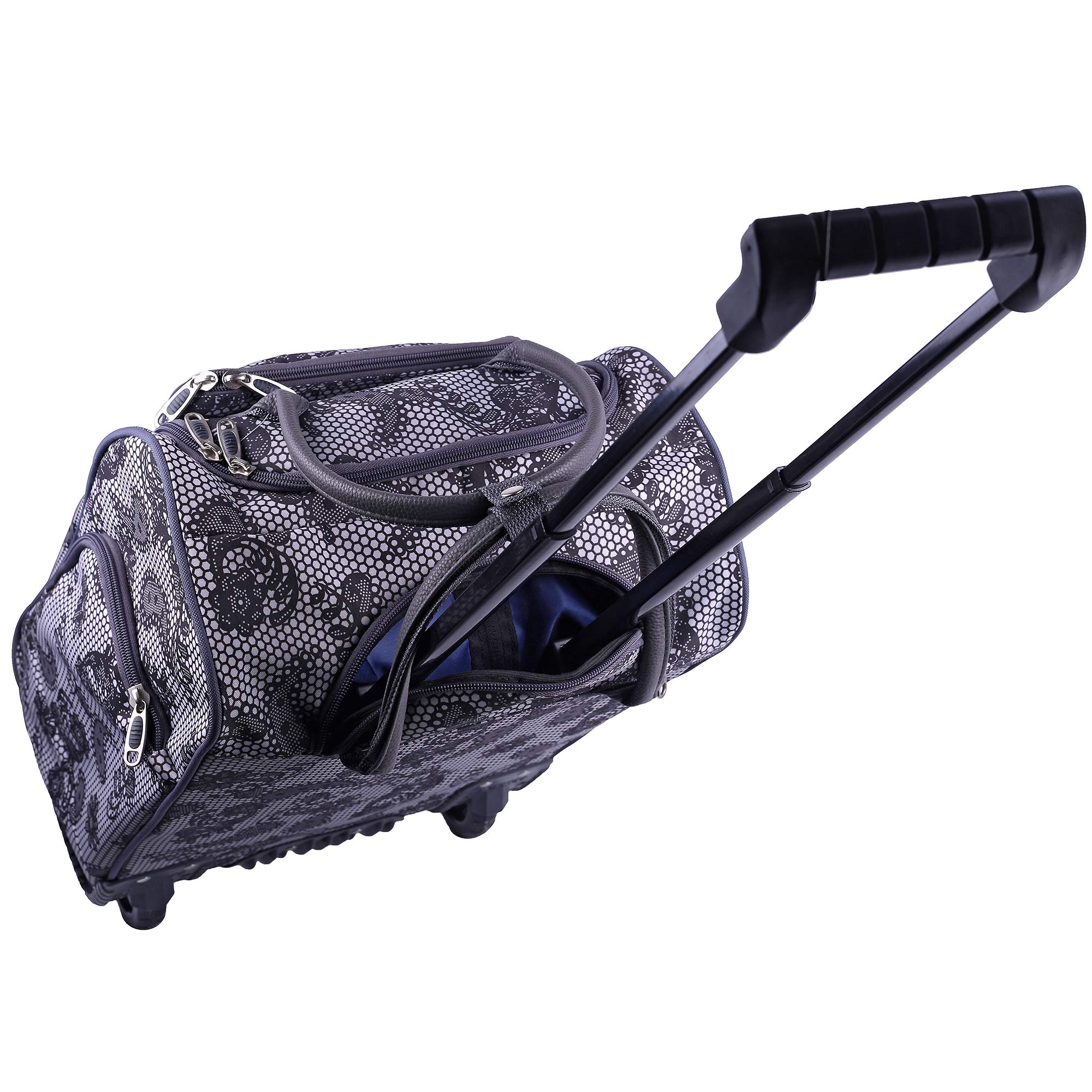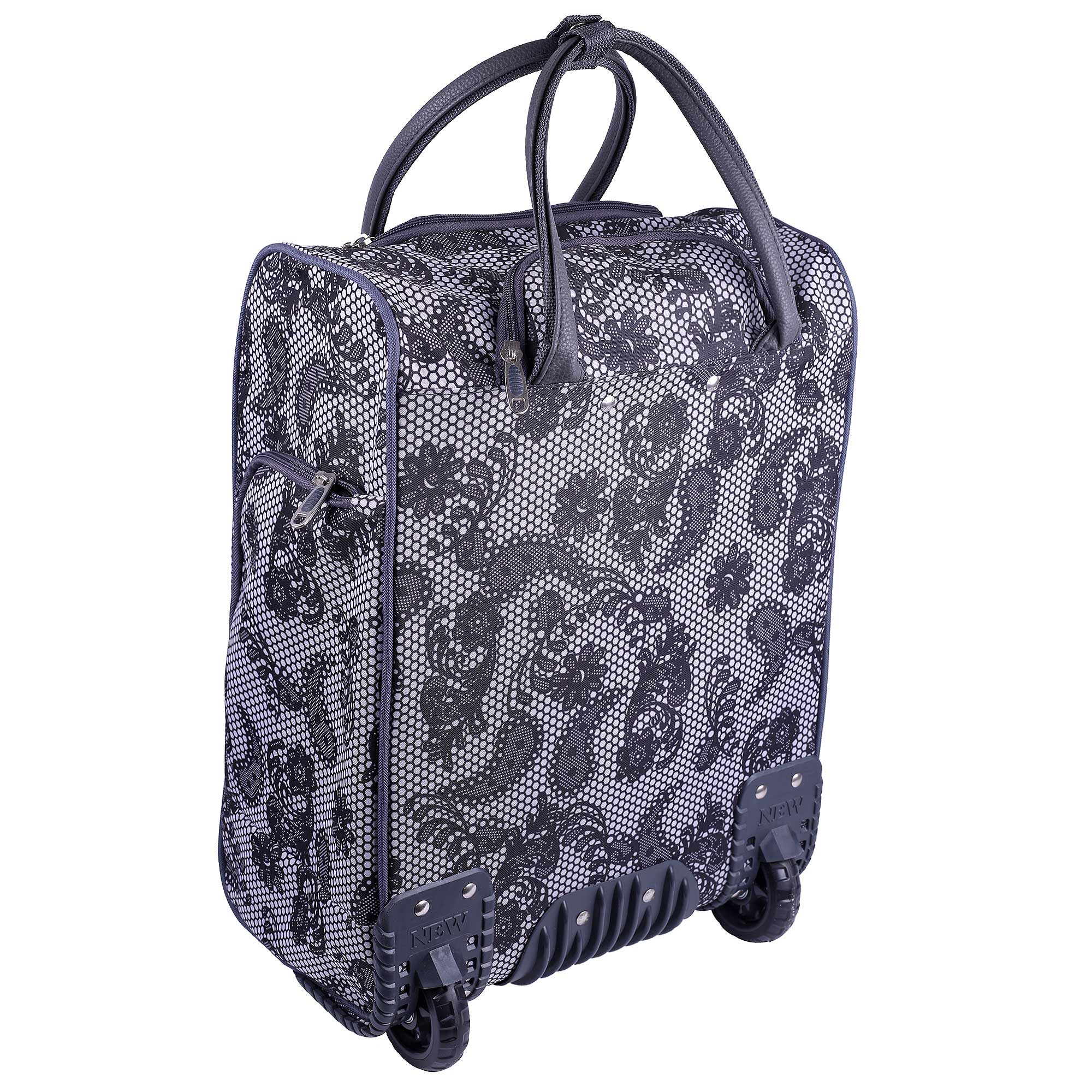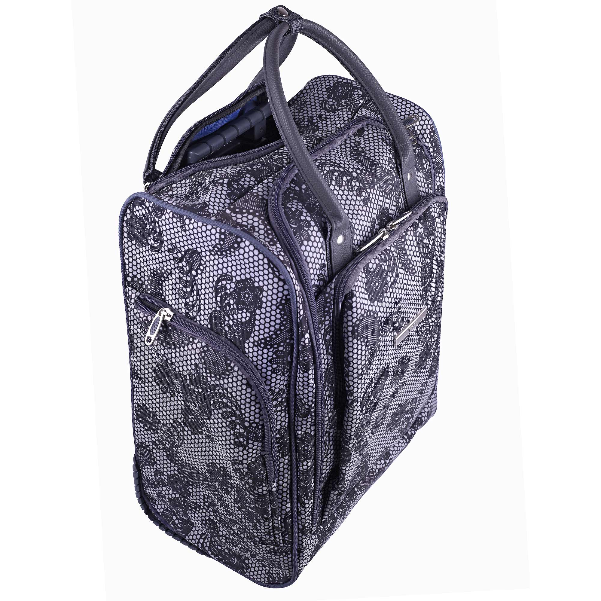 Женская сумка на колесах с выдвижной ручкой. Основное отделение обшито подкладкой и имеет П-образный вход, что очень удобно при укладке вещей. Внутри - один карман на молнии. Снаружи - три кармана на молнии. Данная модель можно использовать не только в поездках или путешествиях, но и как хозяйственную, повседневную сумку.