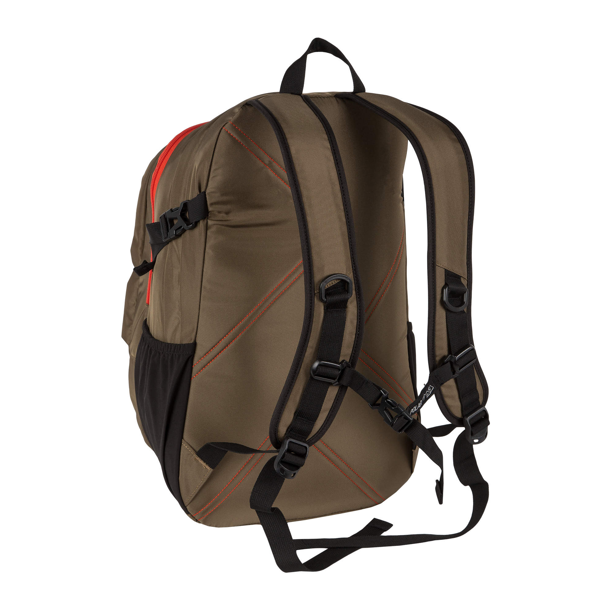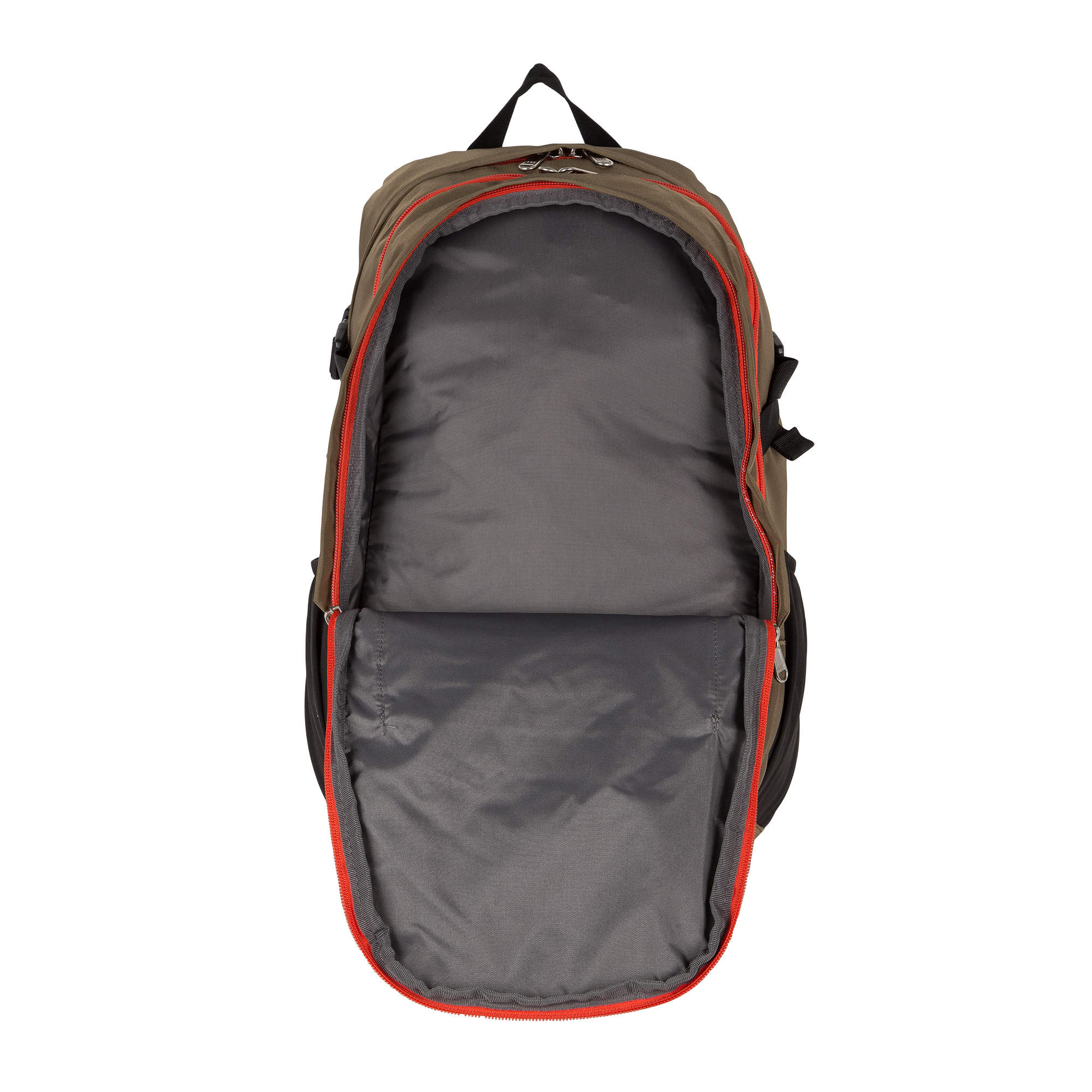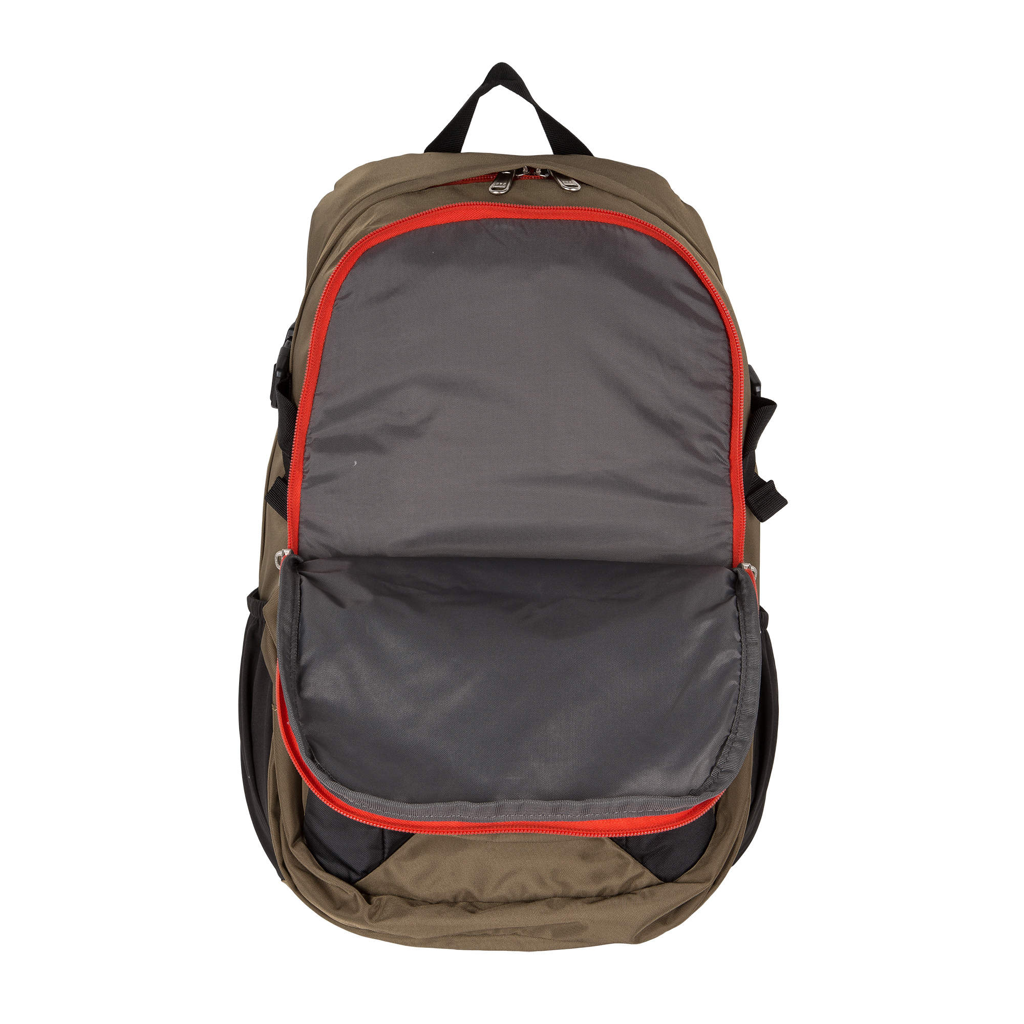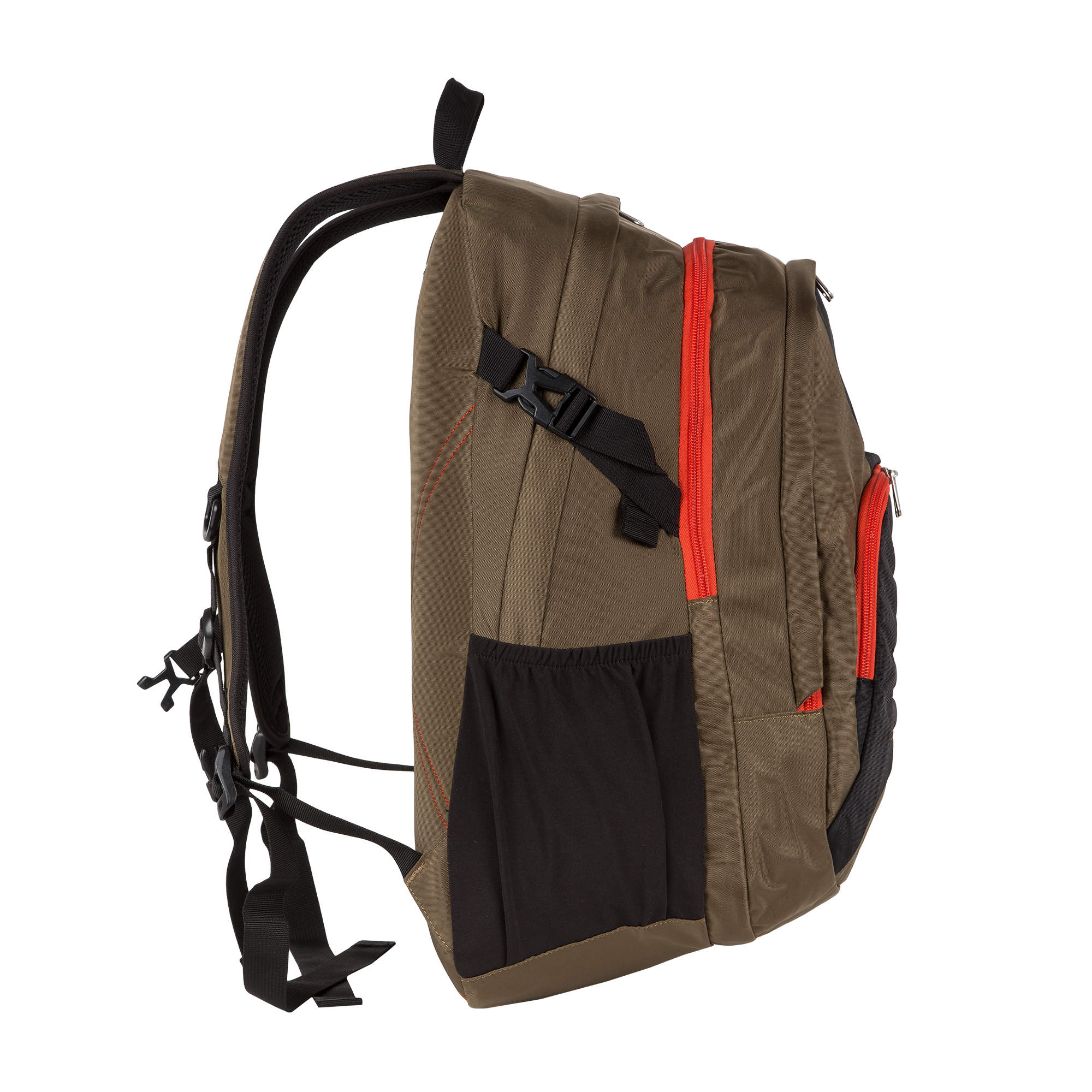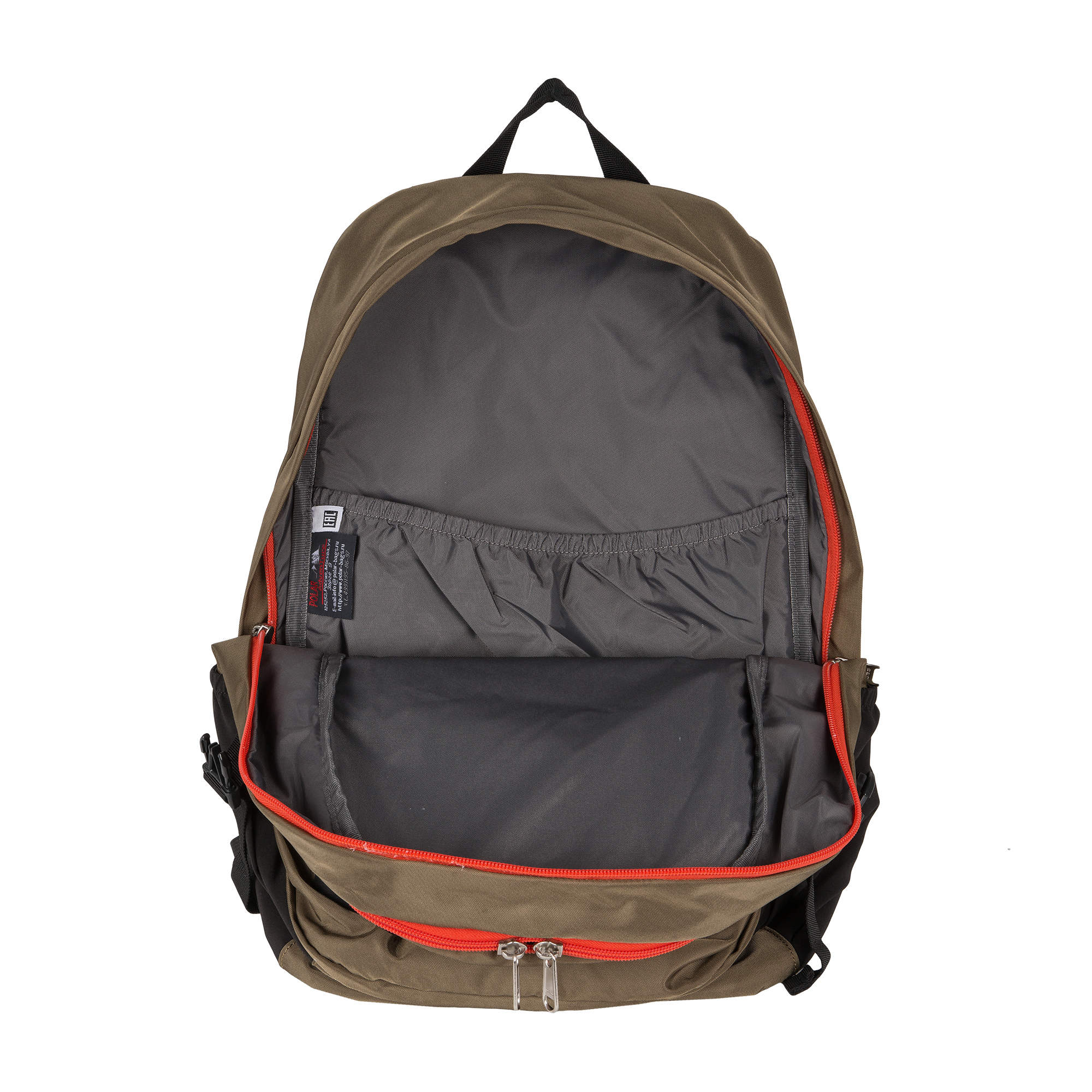 Три отделения на молнии, один карман-органайзер и два кармана для бутылочек с водой. Классический городской рюкзак объемом около 25 литров.
