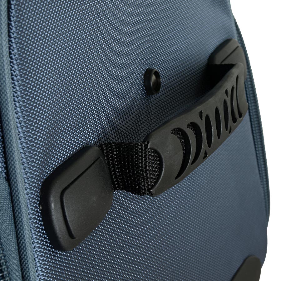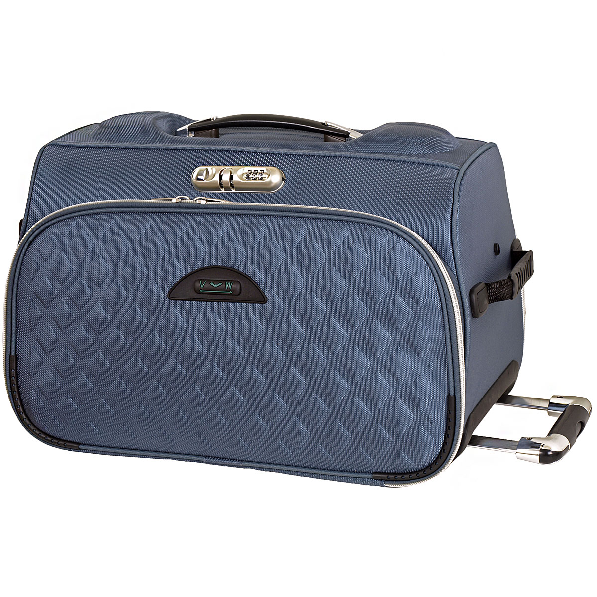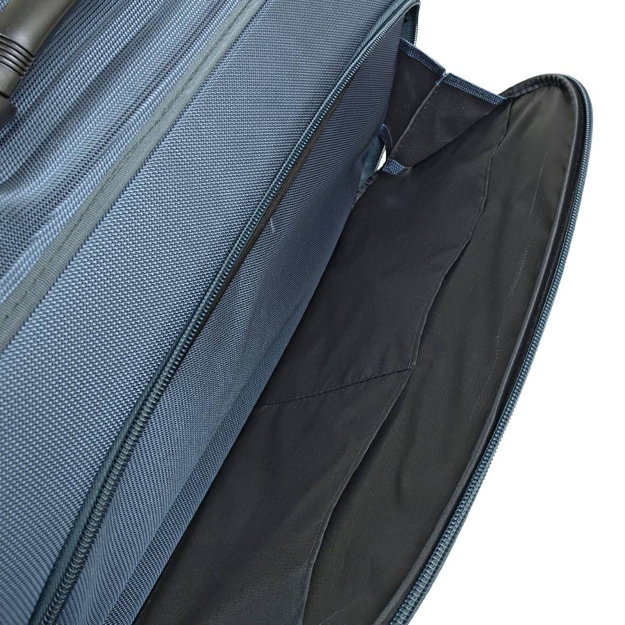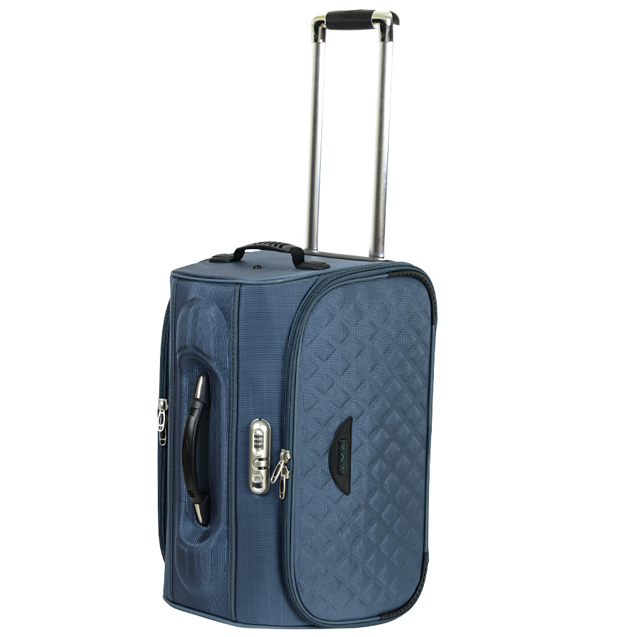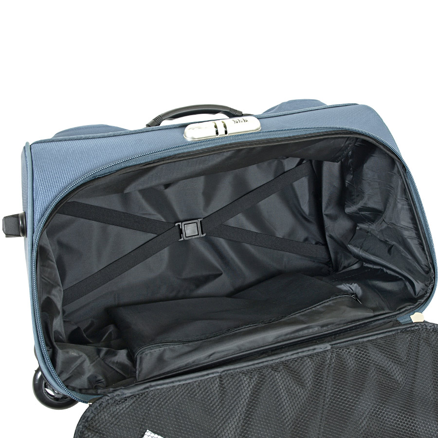 Снаружи – два больших кармана на молнии . Выдвижная ручка полностью убирается внутрь сумки. Есть кодовый замок. У данной сумки отсутствует плечевой ремень.