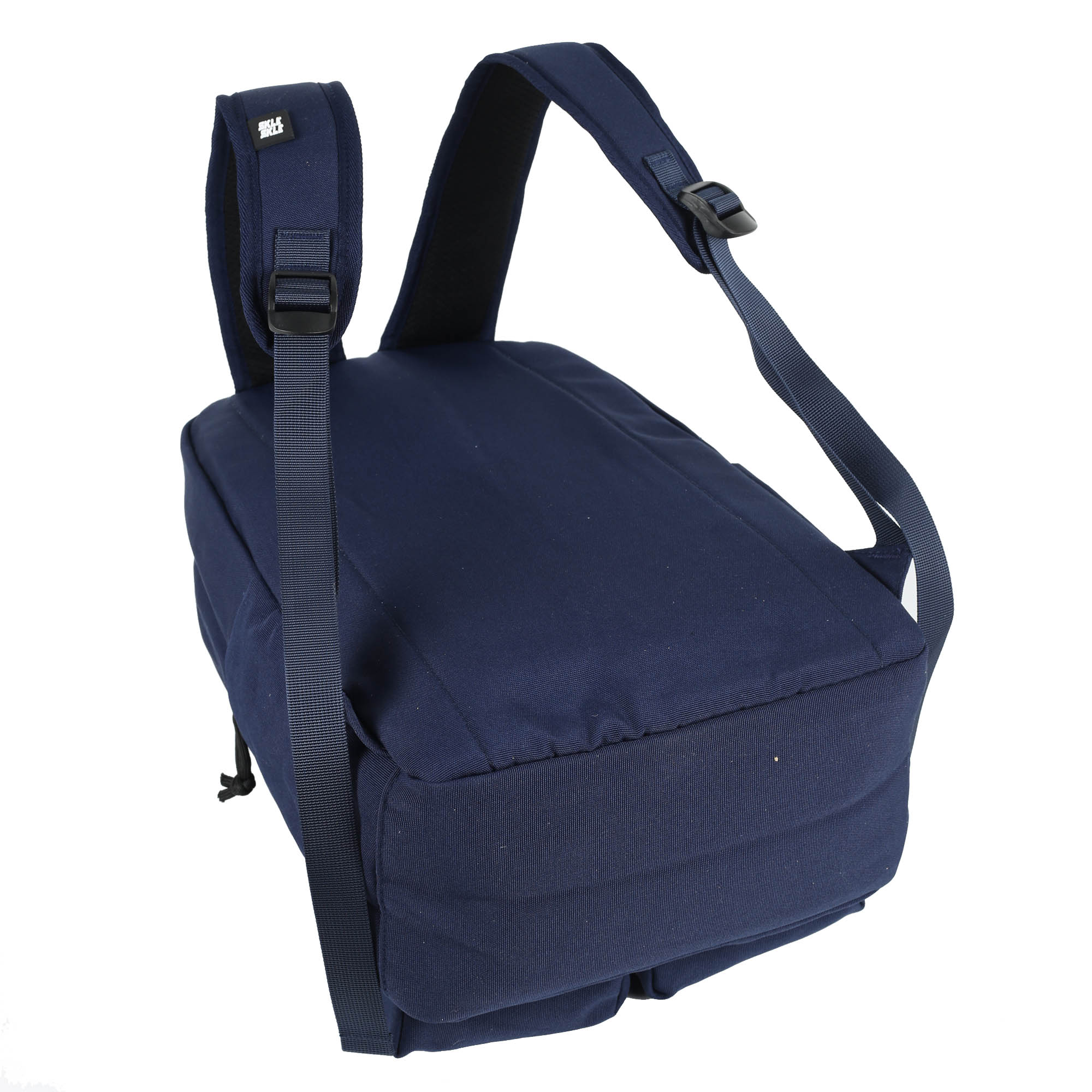 Рюкзак сшит из плотного, крупнозернистого полиэстера, напоминающего хб ткань. Спинка и лямки с уплотнителем из эластичной пены. Лямки обшиты трикотажной сеткой. Внутри основного отделения нейлоновый подклад.