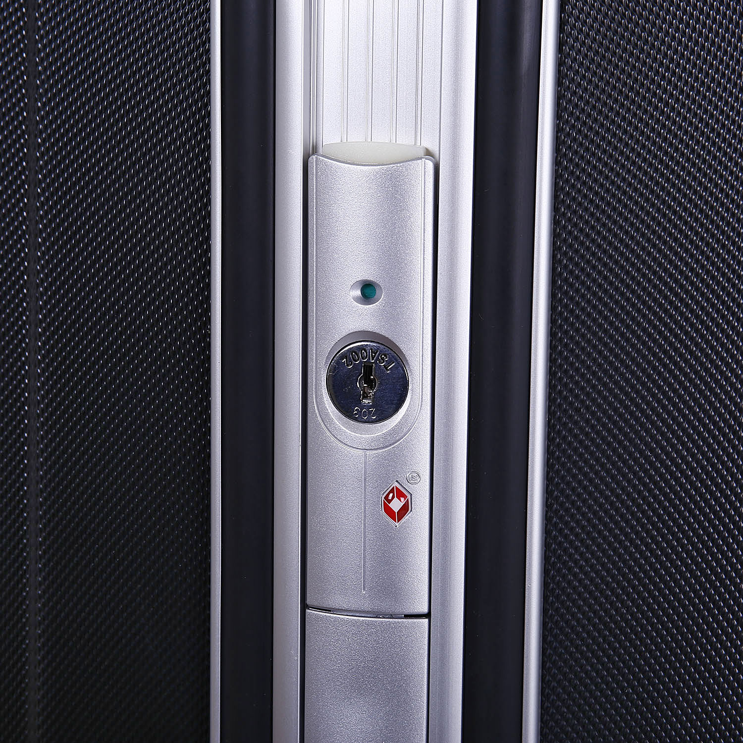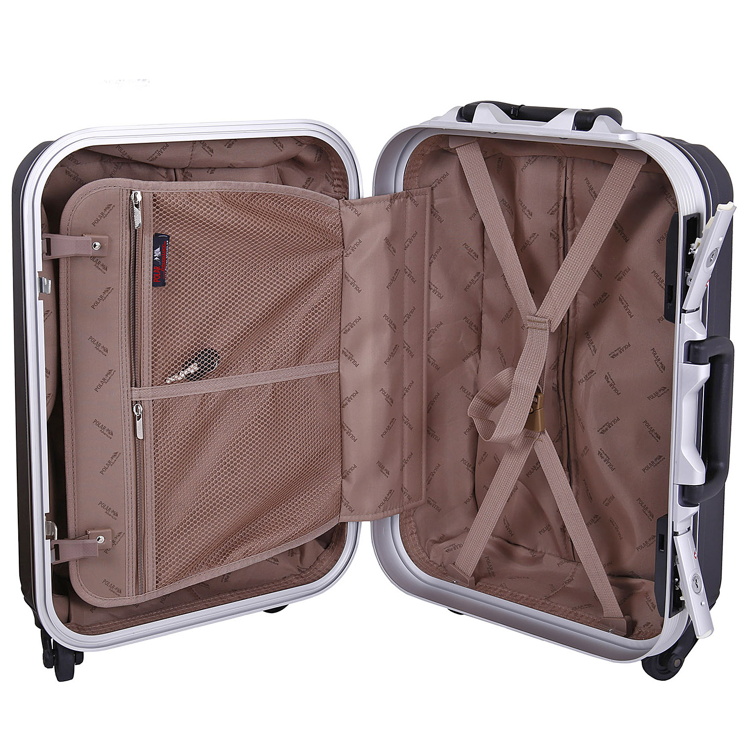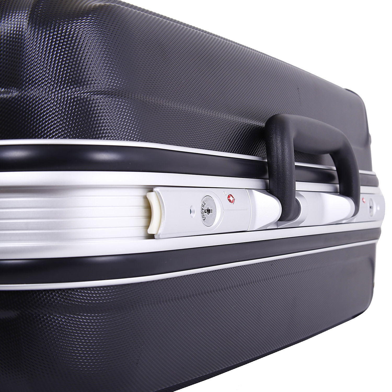 Чемодан премиум класса с двумя TSA замками. Основное отделение закрывается ключом. Внутри — два кармана из сетки и стягивающие ремни. Полезный объем основного отделения 33×48×23см. Ручка фиксируется на высоте 93 и 104см. В этой модели чемодана, вместо молнии — алюминиевый профиль, с двумя механическими замками, что очень сильно затрудняет несанкционированное вскрытие. В комплекте есть транспортировочный чехол.