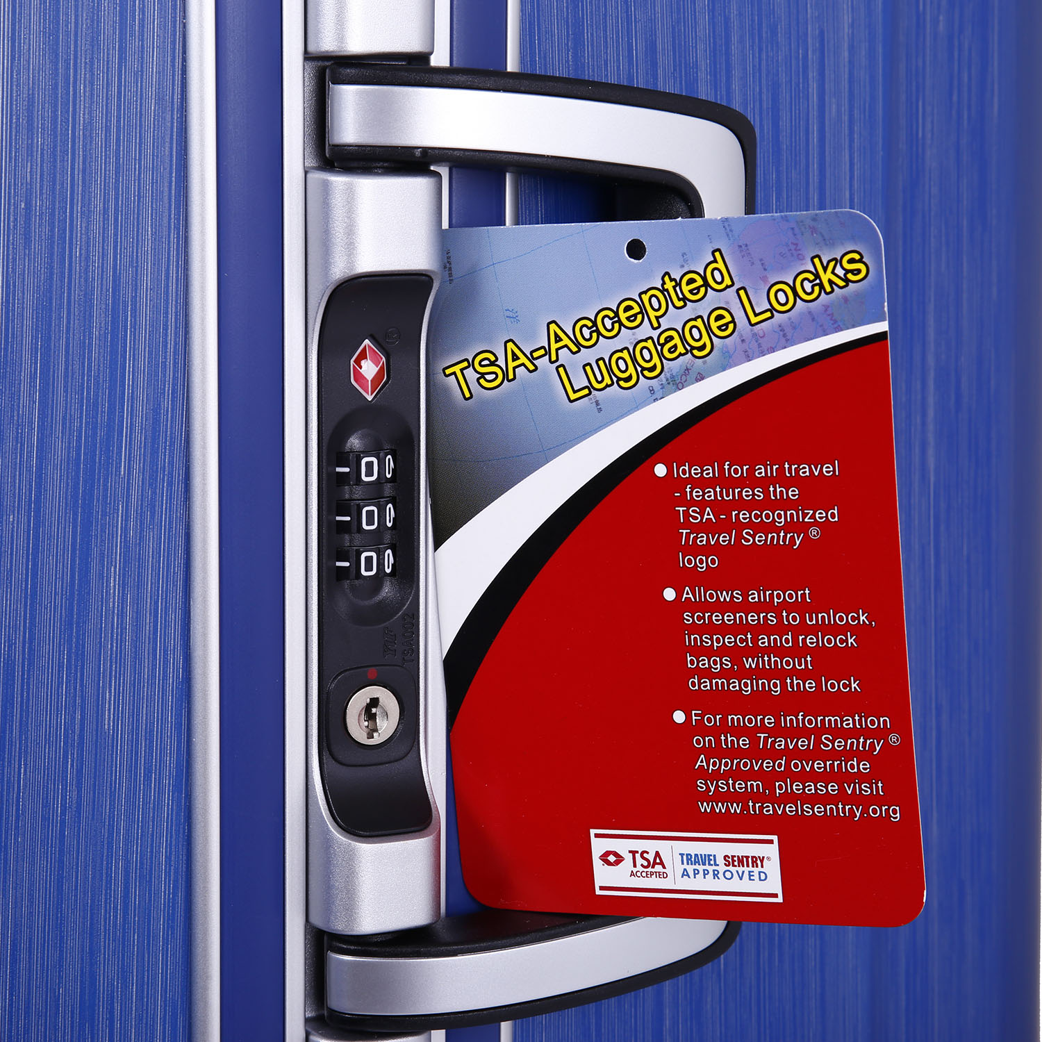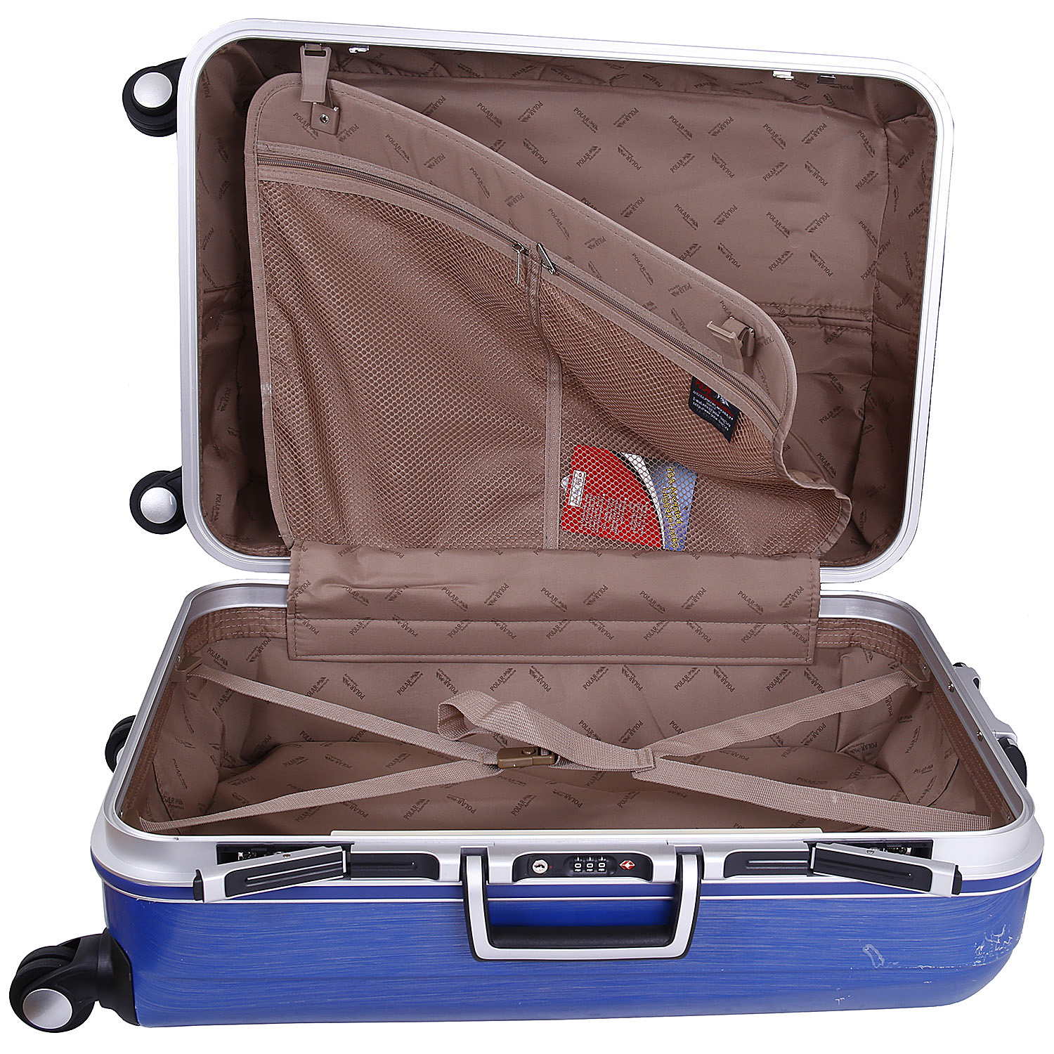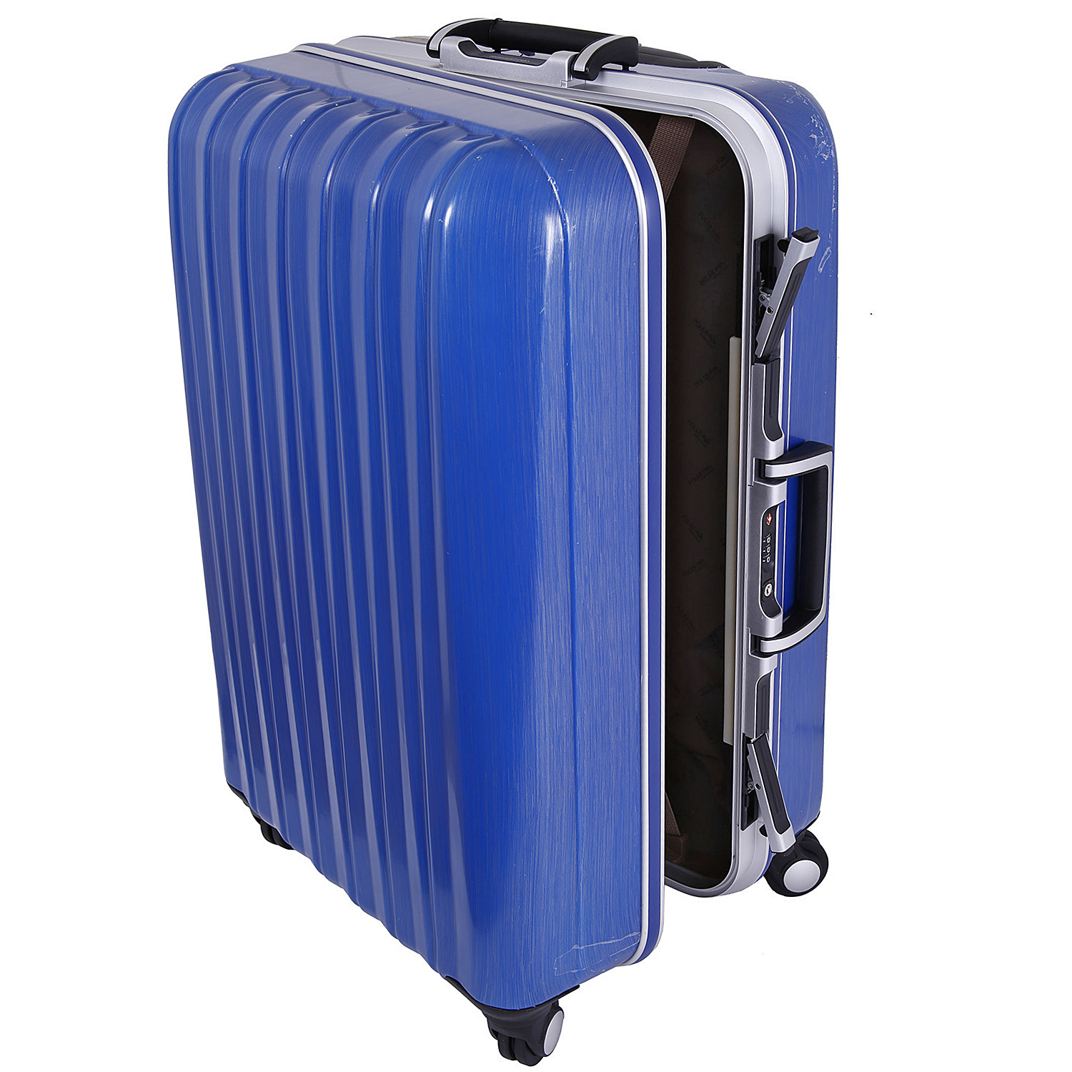Чемодан премиум класса с защелками и TSA замком. Основное отделение закрывается кодовым замком. Внутри — два кармана из сетки и стягивающие ремни. Полезный объем основного отделения 42×59×28см. Выдвижная ручка фиксируется на высоте 104см. В этой модели чемодана, вместо молнии — алюминиевый профиль, с двумя механическими замками, что очень сильно затрудняет несанкционированное вскрытие. В комплекте есть транспортировочный чехол.