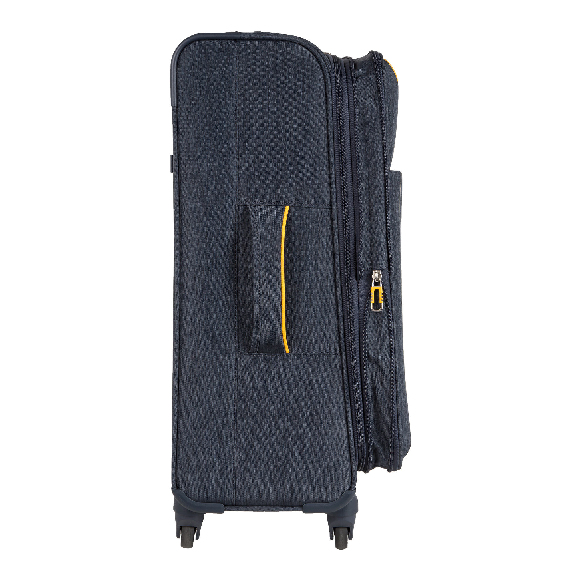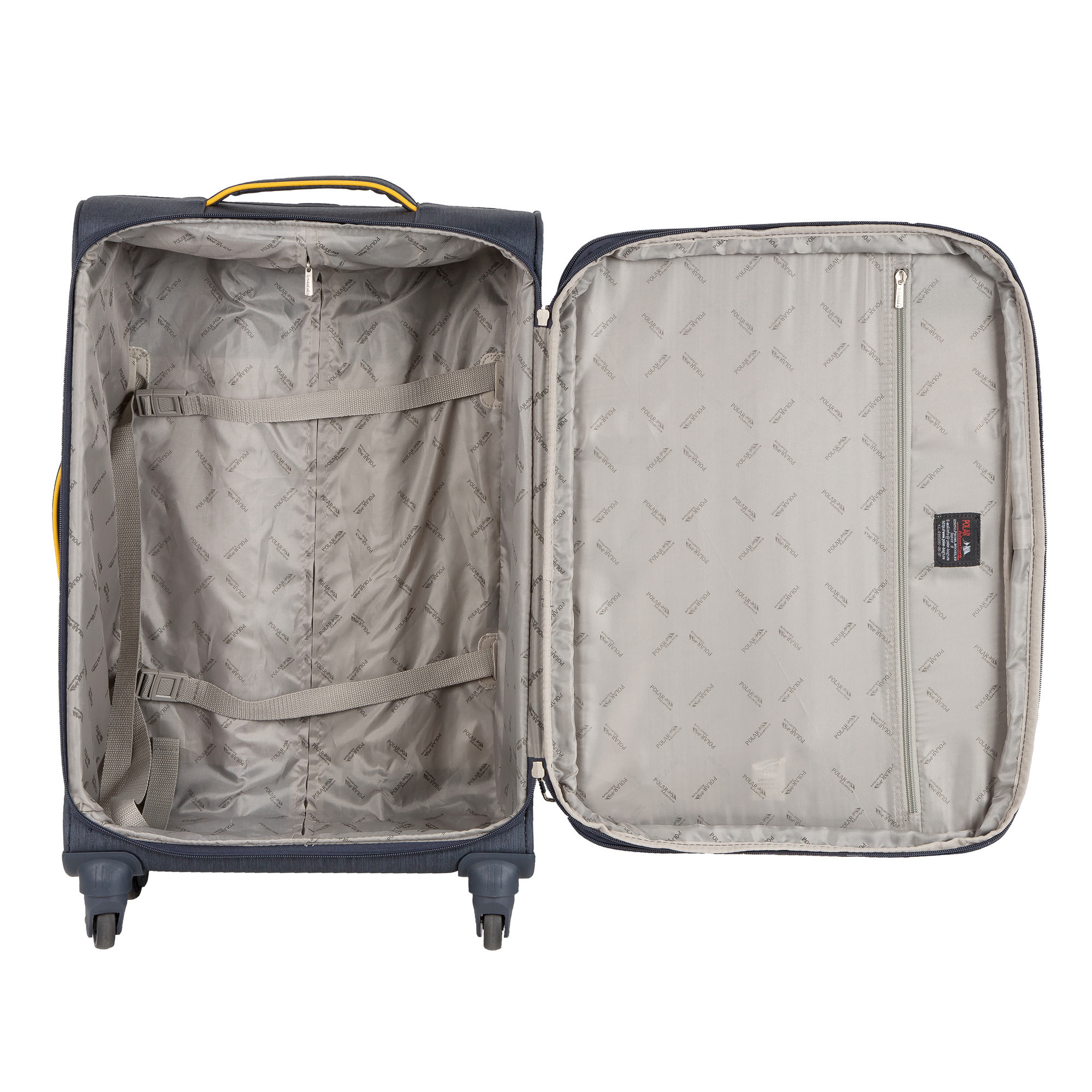 Основное отделение можно увеличить, расстегнув молнию по периметру. В таком случае чемодан станет глубже на 5 см. Внутри есть стягивающие ремни и карман на молнии. На передней части чемодана расположены два кармана на молнии, которые могут быть полезны для мелочей.